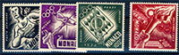 Poste aérienne Ref#[2033] Merson 2F orange et vert-bleu surchargé du salon internationnal de la poste aérienne à Marseille, variété du timbre support écusson cassé. Quelques rousseurs sur des dents en haut, mais timbre rare. bon centrage.