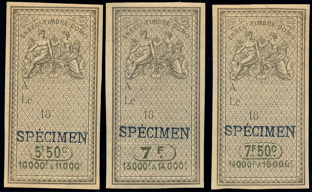 n°311B+311D+311E *, 5F50 + 7F + 7F50(pli) NON EMIS, surcharge SPECIMEN. TB