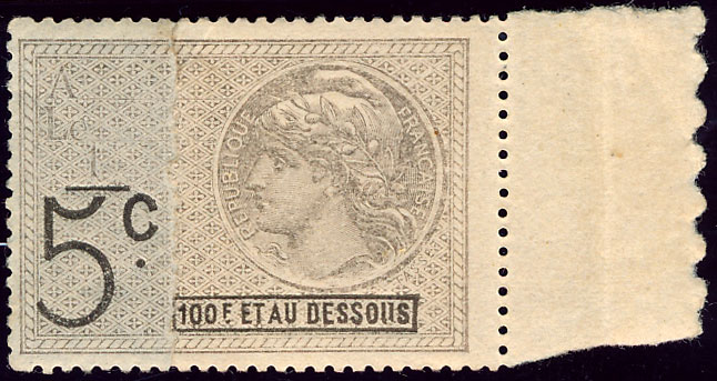 n°312a *, Groupe Allégorique d"Oudiné, sans inscription de la valeur. superbe et rare.