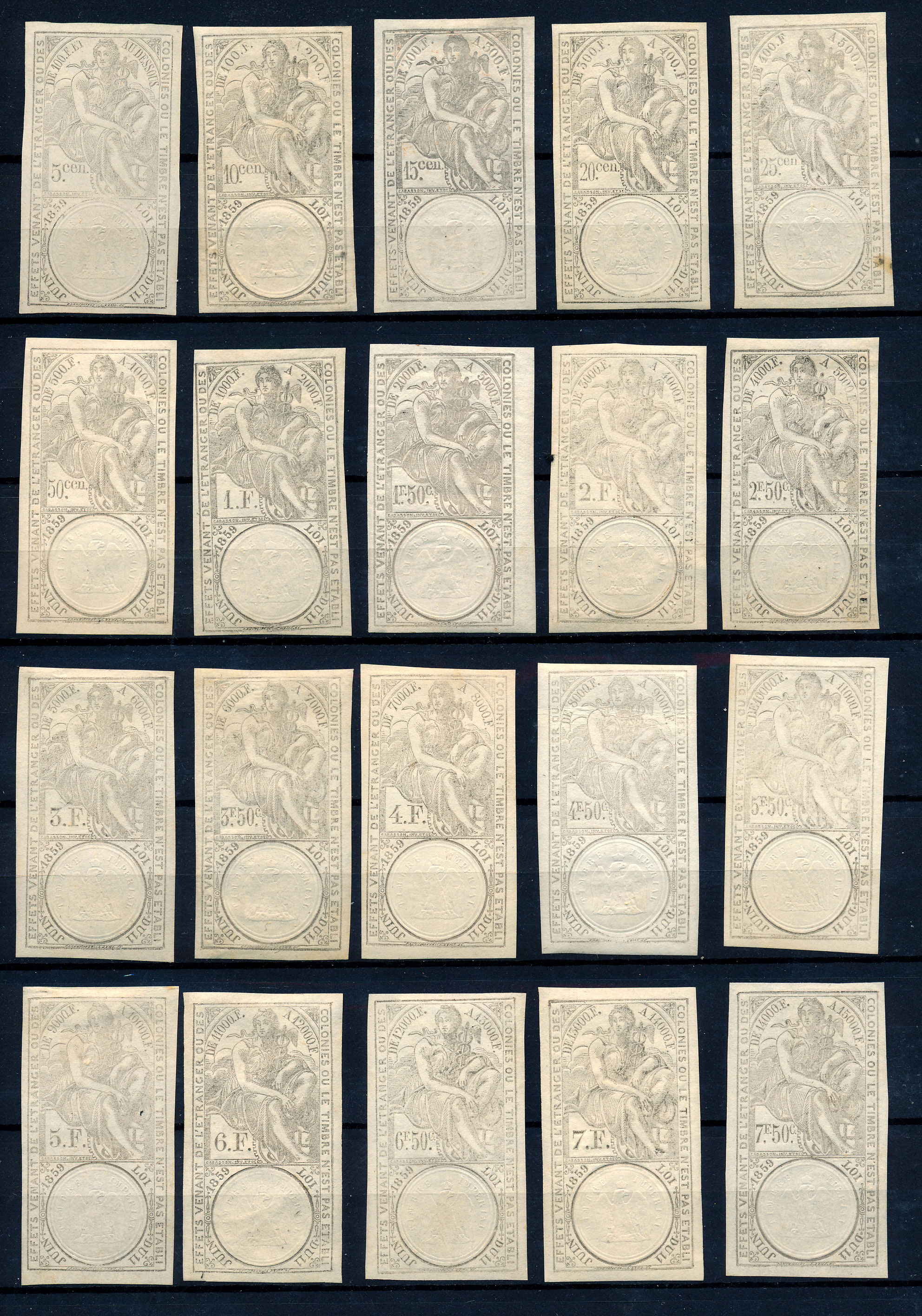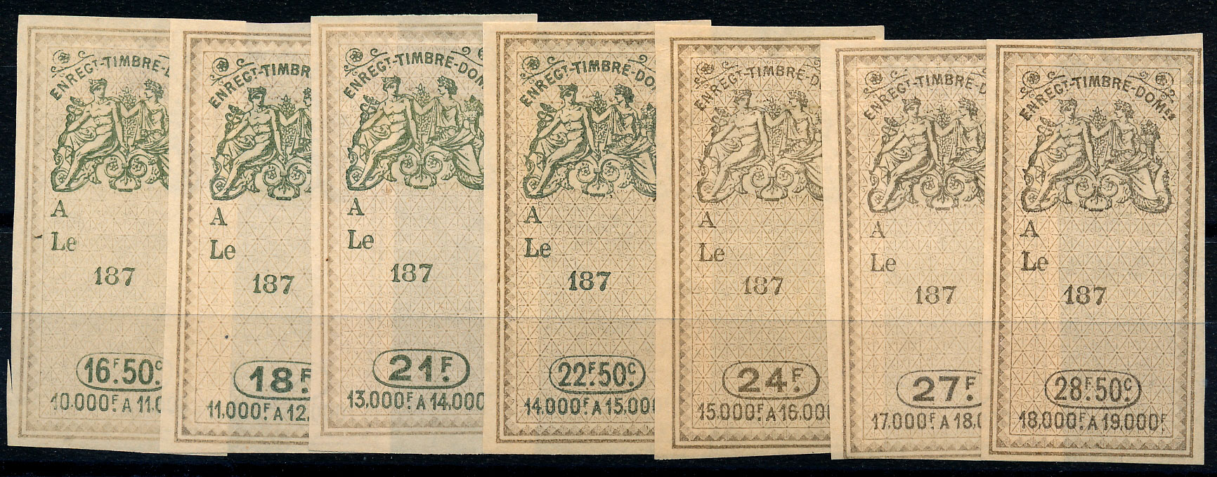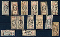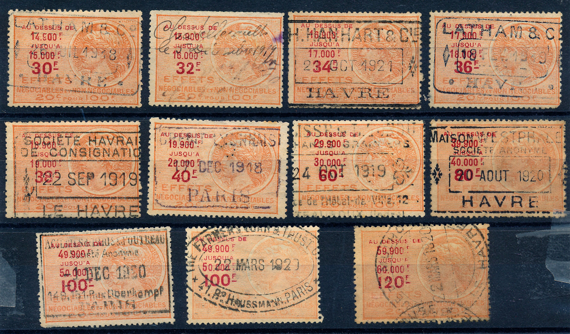 n°27/50 , 13 timbres avec petites variétés de tirets absents sous FR, C ou F, 100 espacé ou perçage. peu communs