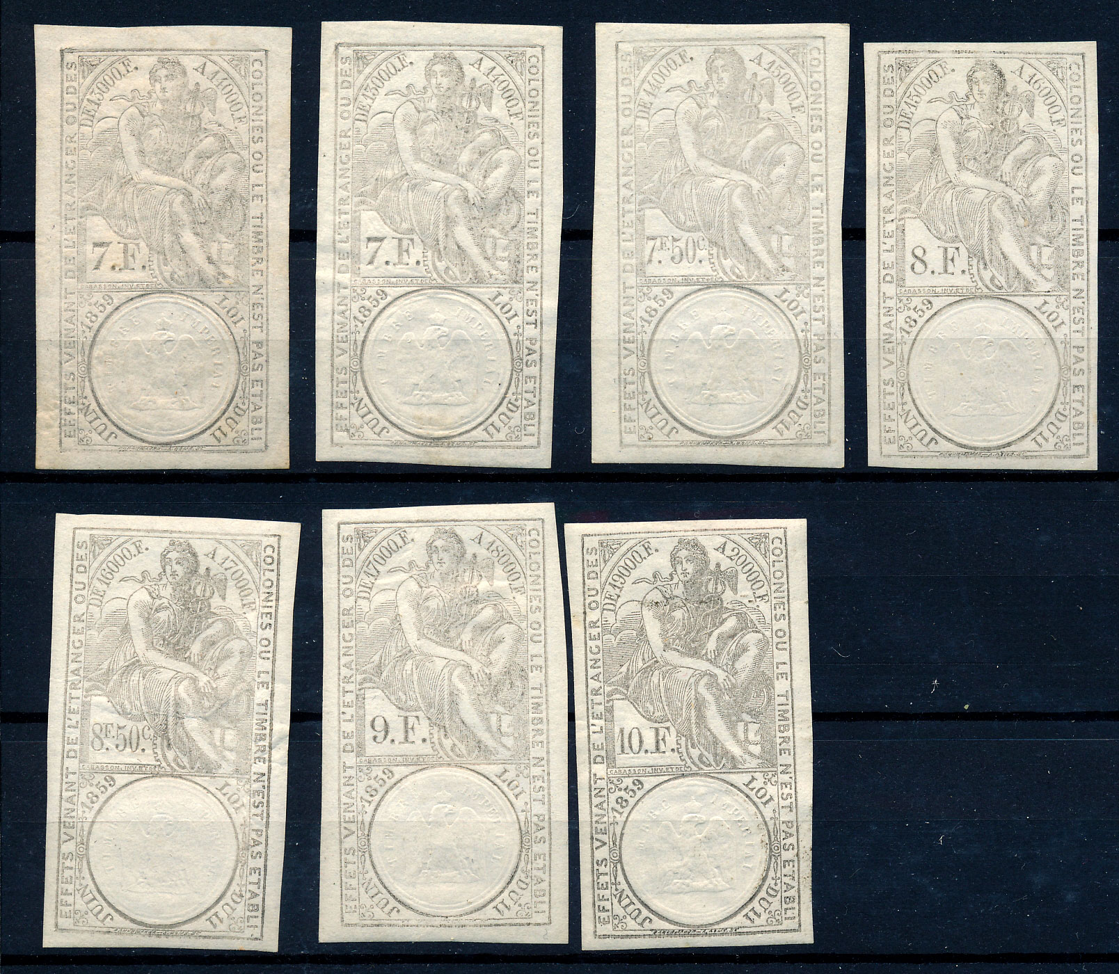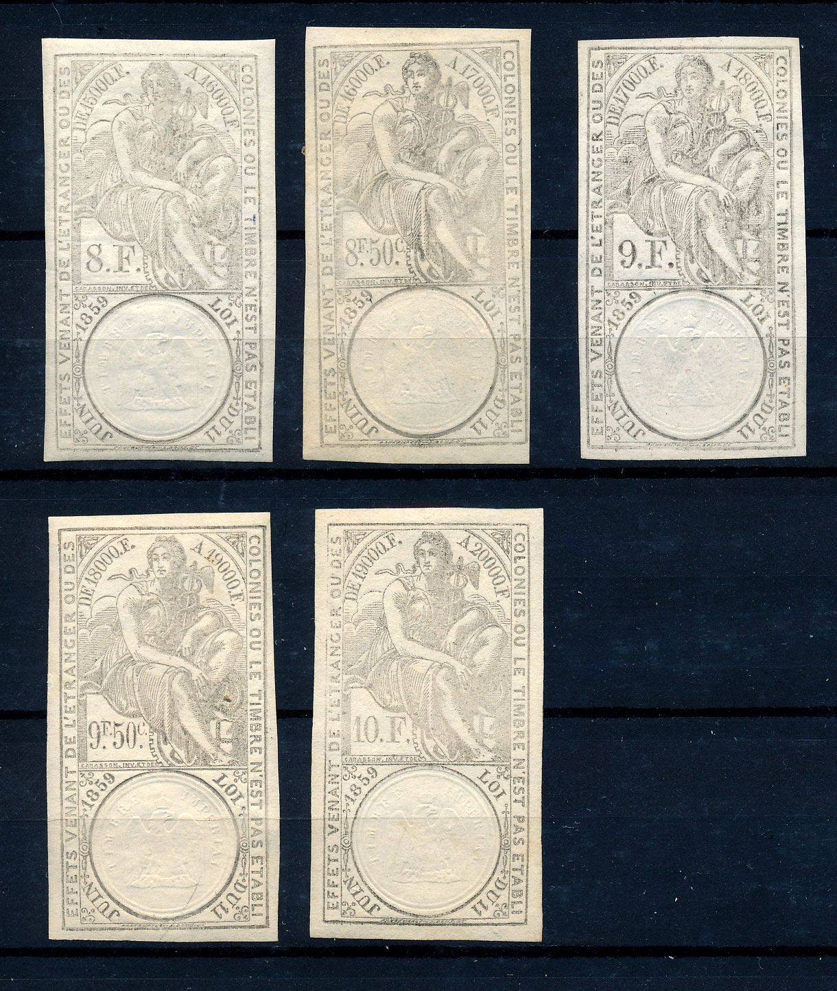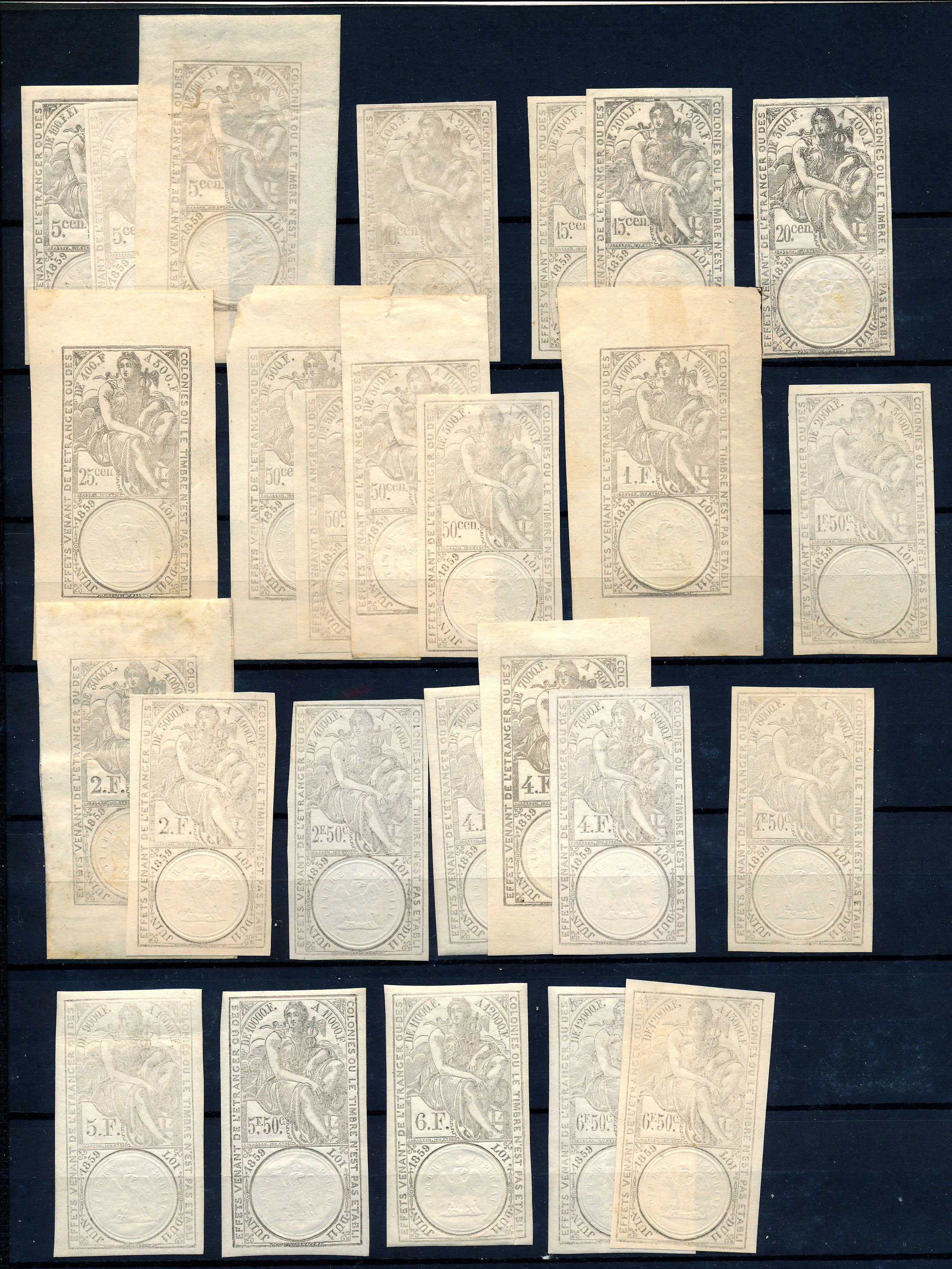 n°27/50 , 13 timbres avec petites variétés de tirets absents sous FR, C ou F, 100 espacé ou perçage. peu communs