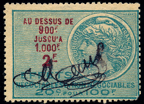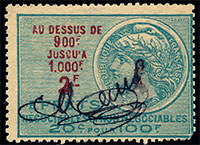 n°450A , 2F Médaillon de Tasset, grande légende. manque une dent mais timbre rare.