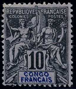 n°1 , 10c noir sur papier bleu, type IV, oblitération de Libreville, légère adhérence au verso. TB.