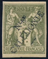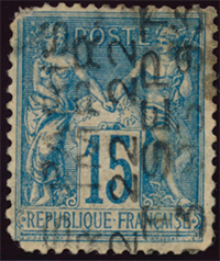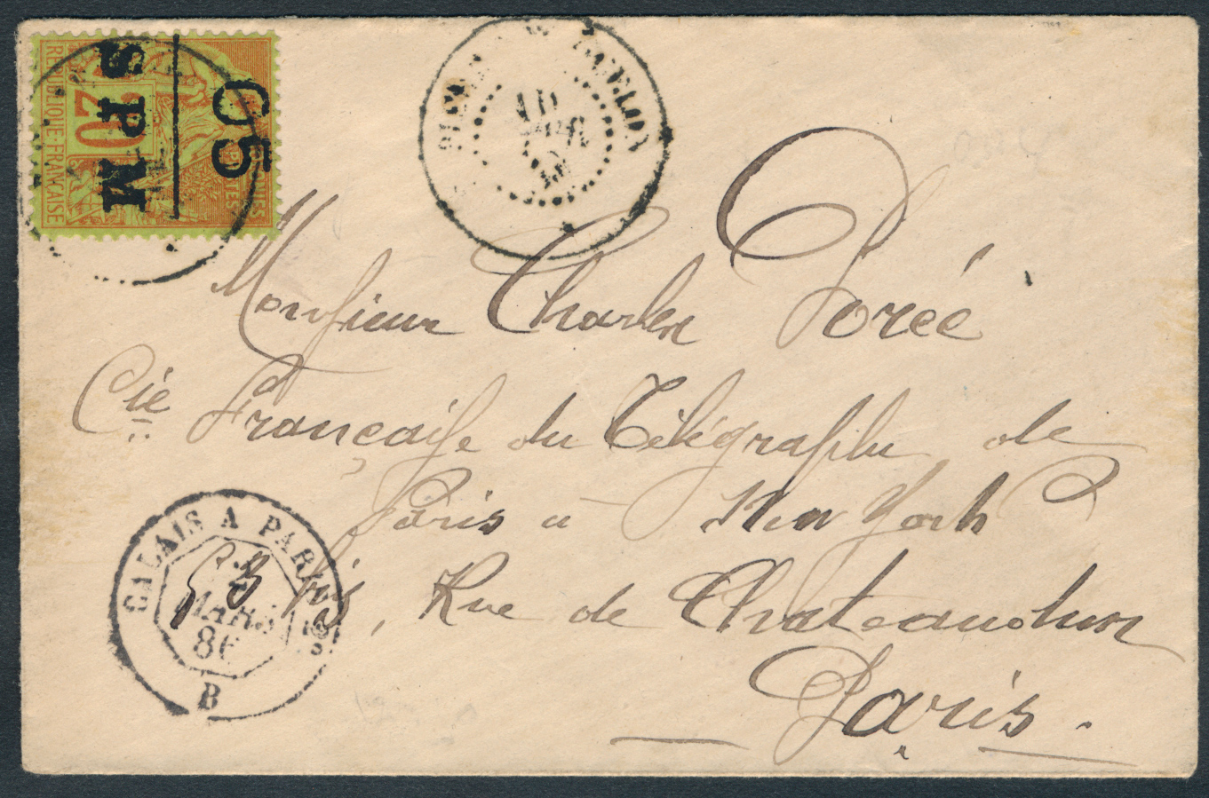 n°19 , 15c seul sur lettre remise au paquebot ANADYR de la ligne N le 2 octobre 1875 à l"escale de Hong Kong à destination de SAIGON (arrivée le 5 octobre 1875), très rare