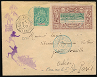 AIT-BEIDA  lettre de AIT-BEIDA du 22 juillet 68 à destination de CONSTANTINE, double port, affranchissement rare 10c + 5x2c annulé PC 4116. Un timbre défectueux sinon pièce très rare.