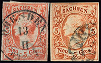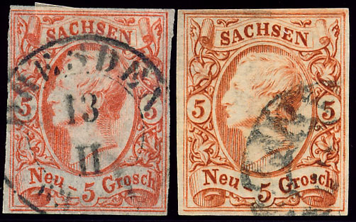 n°11+11a , 5g rouge et rouge brun foncé. TB.
