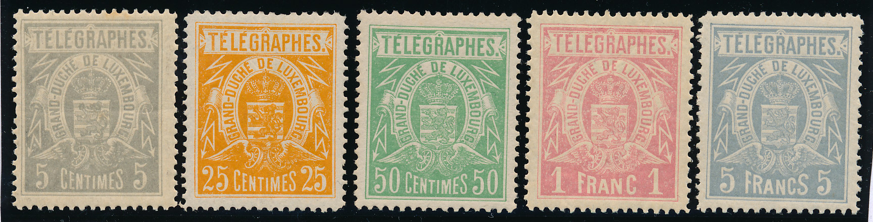 n°1/5 *, 5 valeurs, le 5c avec léger pli de gomme sinon superbe
