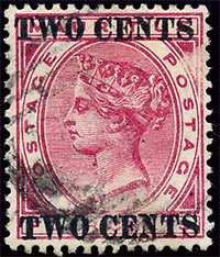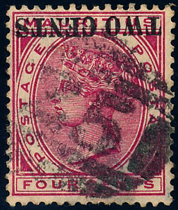 n°79a , 4c rose, surcharge renversée. non catalogué oblitéré. aminci. SG118a, surch inverted. thin.