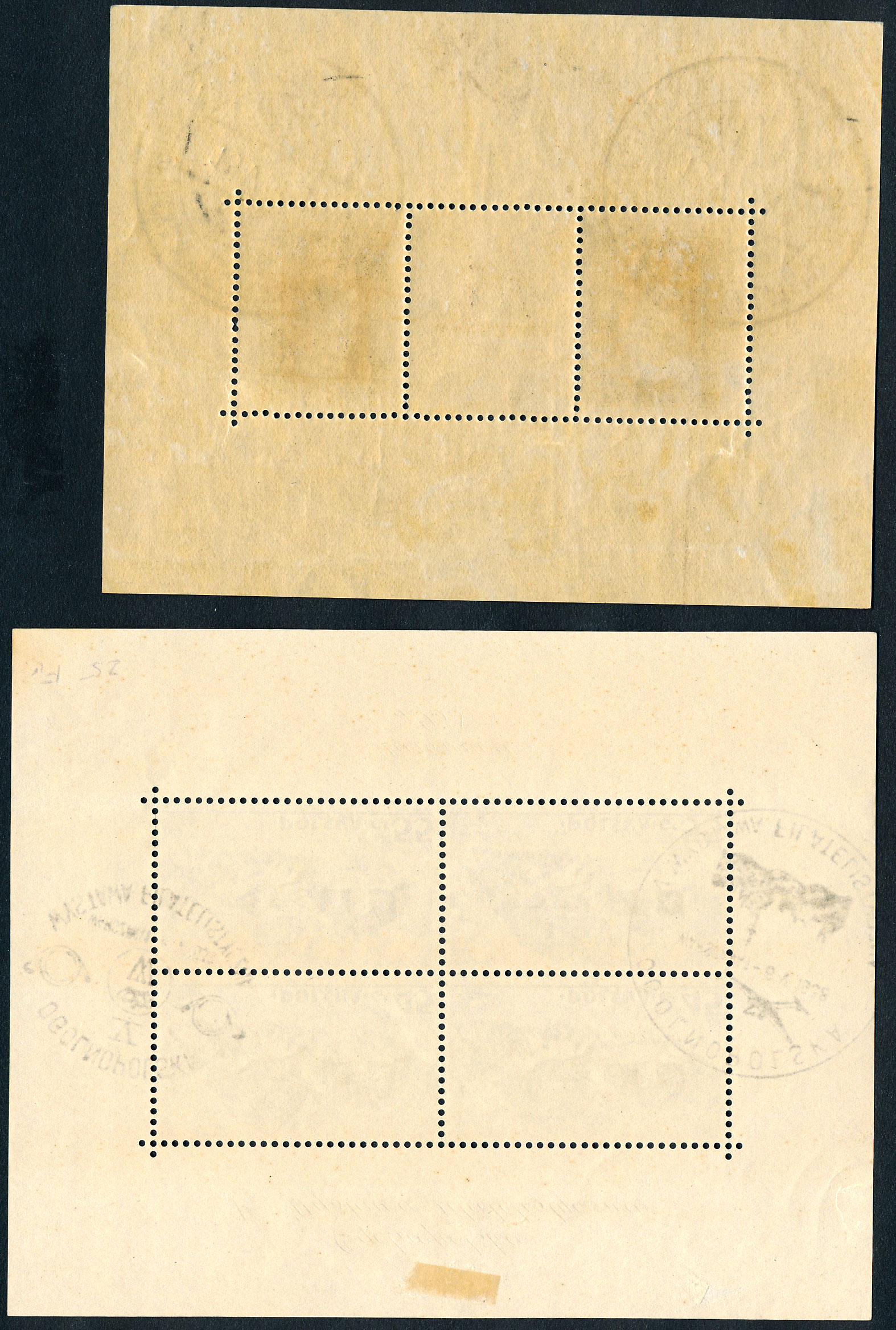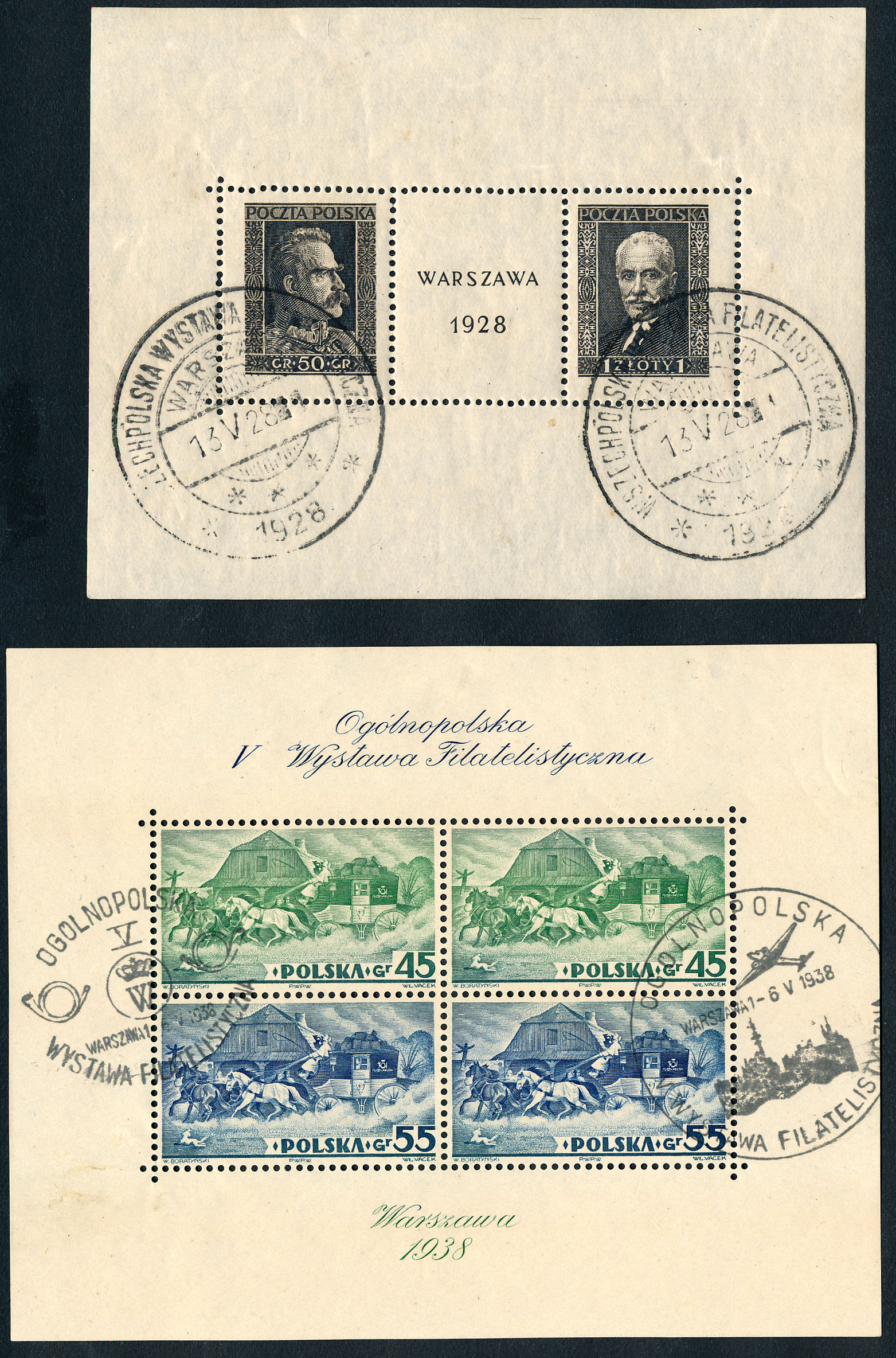 n°1+5 , les deux blocs, oblitérés. bon état. Expo de Varsovie 1928 et 1938.