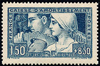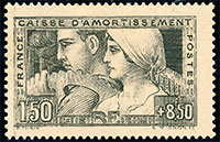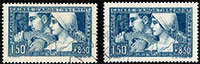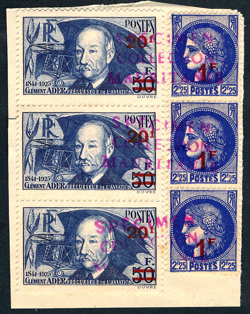 n°1535 **, 0.50f Cheffer NON EMIS. essai de couleur en bistre foncé, jaune orange et bleu foncé se tenant. superbe. quelques pièces connues.