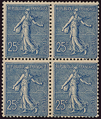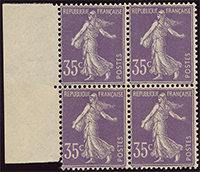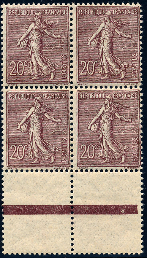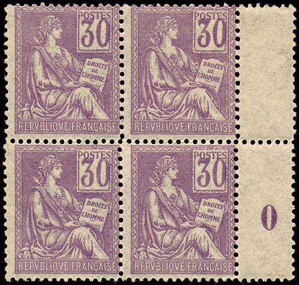 vignette expérimentale (Yvert MA1), la seule représentant une Marianne, préparée fin 1974 pour des essais de phosphorescence, in fine mis en oeuvre sur les projets de remplacement de la Marianne de Béquet (Excoffon, Durrens, Béquet) et la Sabine; 1 seule feuille de 100 pièces connue. neuf avec gomme d"origine intacte, bloc de 4