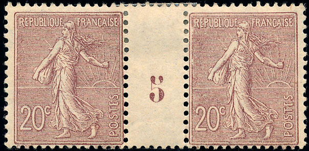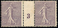 n°2243 **, 3F brun violet Liberté. piquage à cheval en paire bord de feuille. TB.