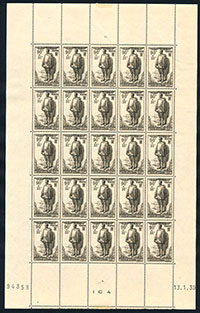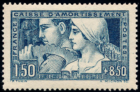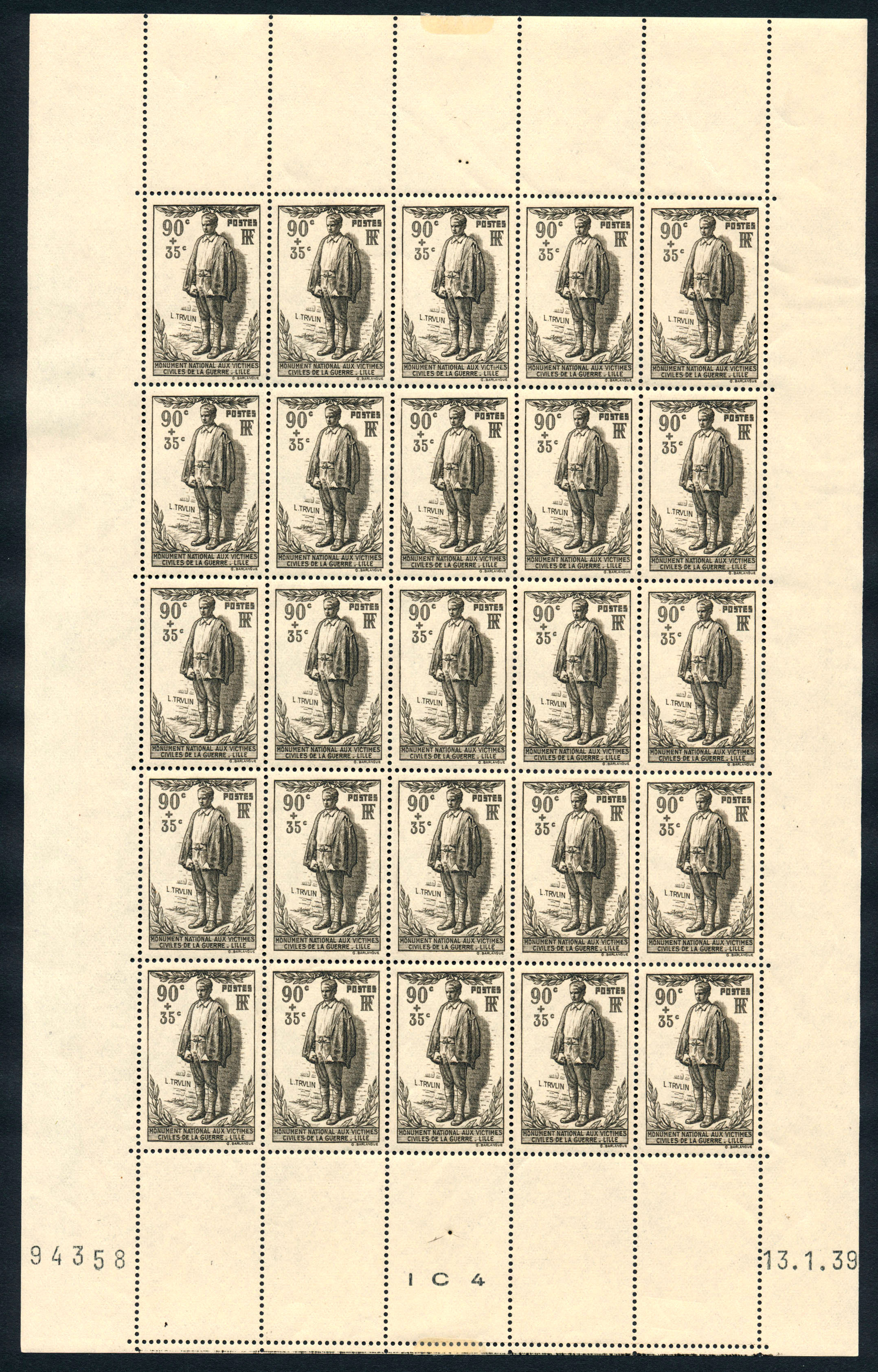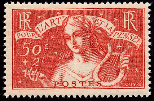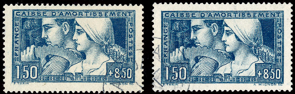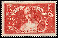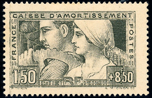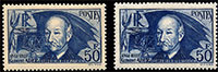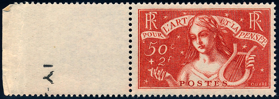 n°1535 **, 0.50f Cheffer NON EMIS. essai de couleur en bistre clair tenant à orange. superbe. quelques pièces connues.