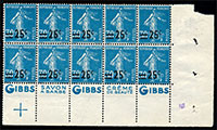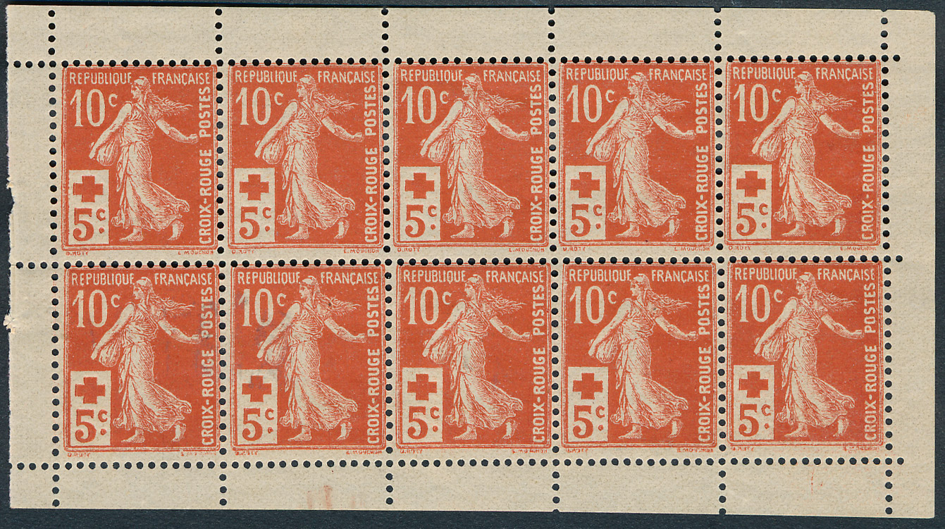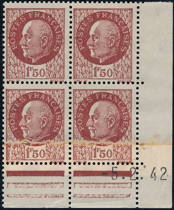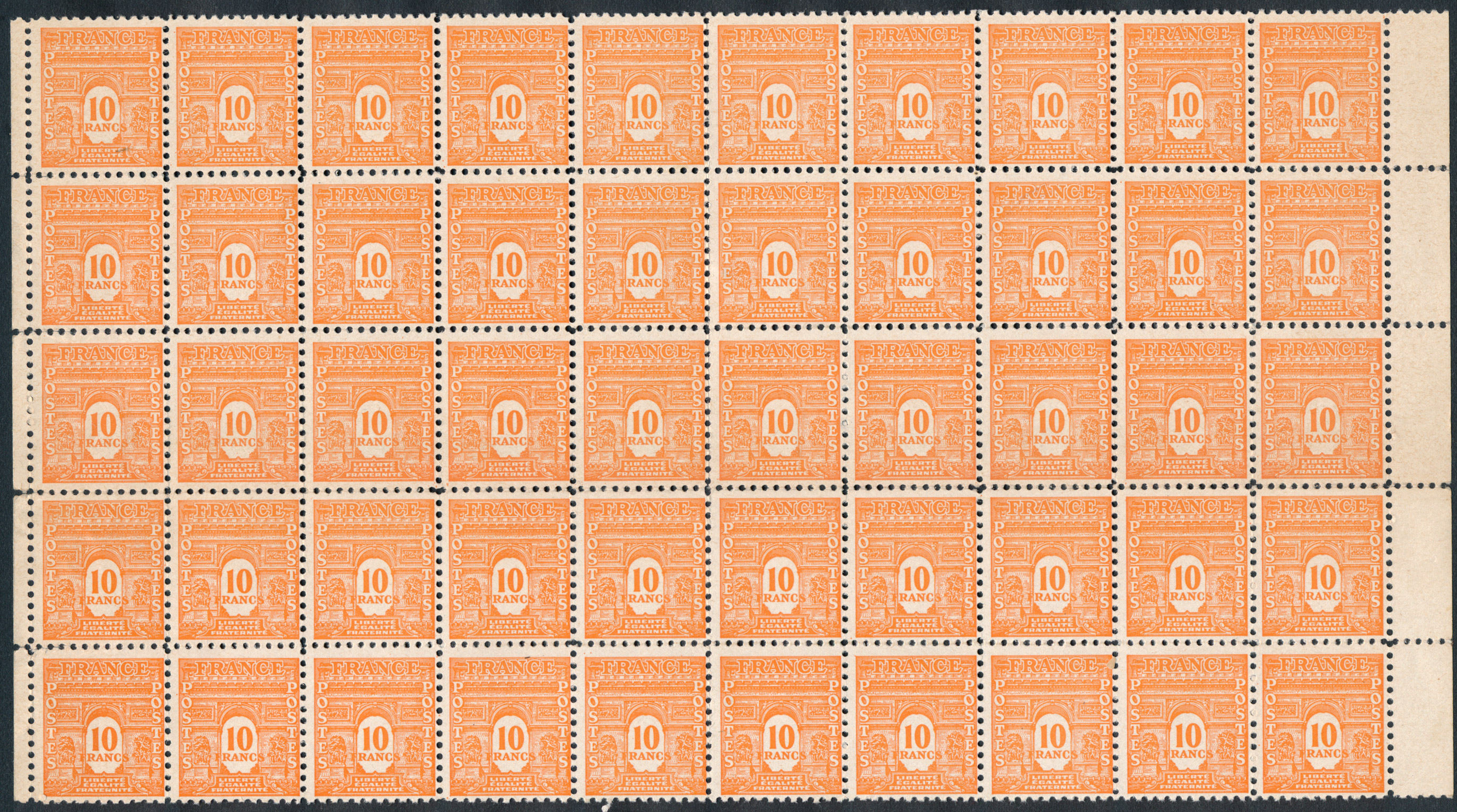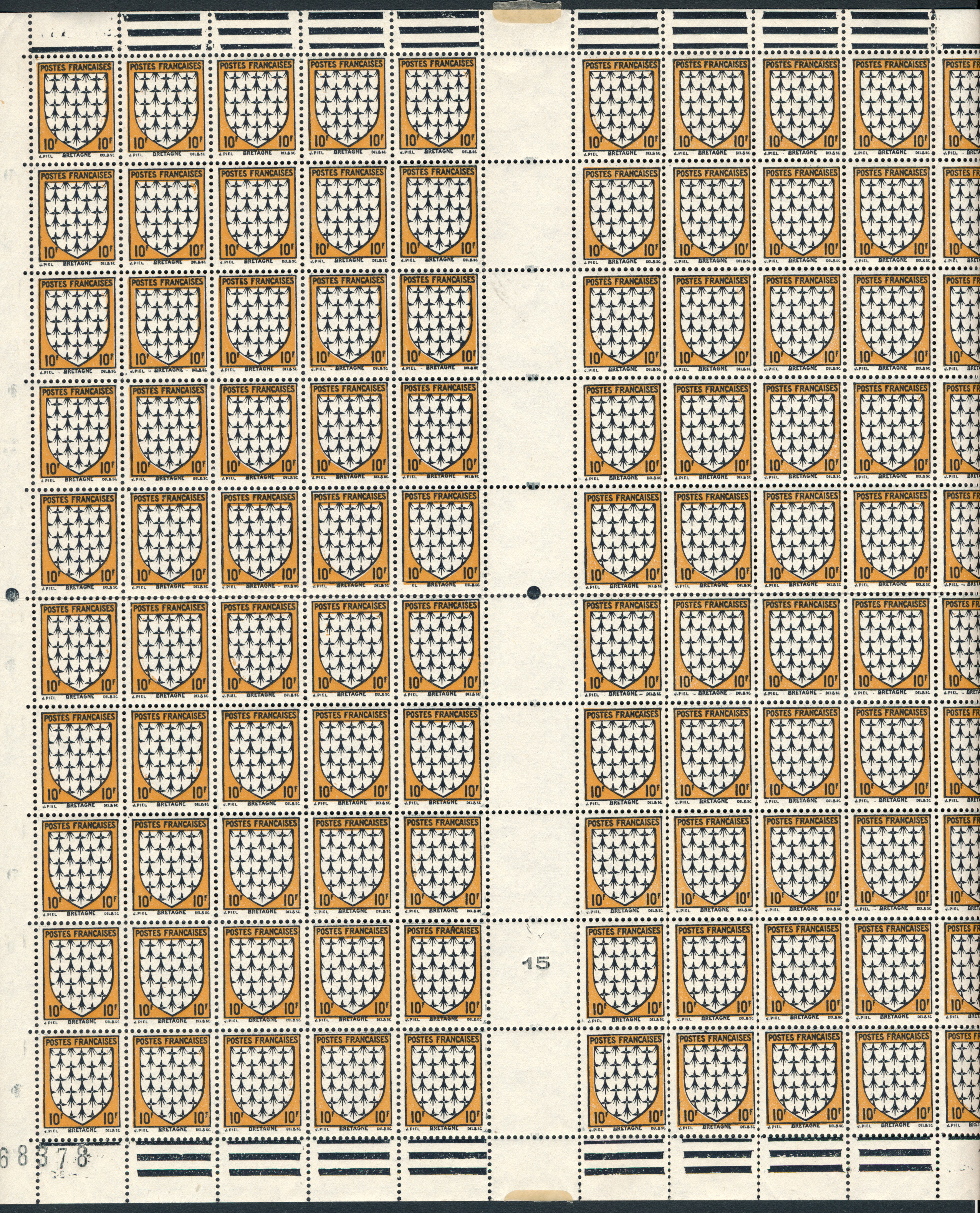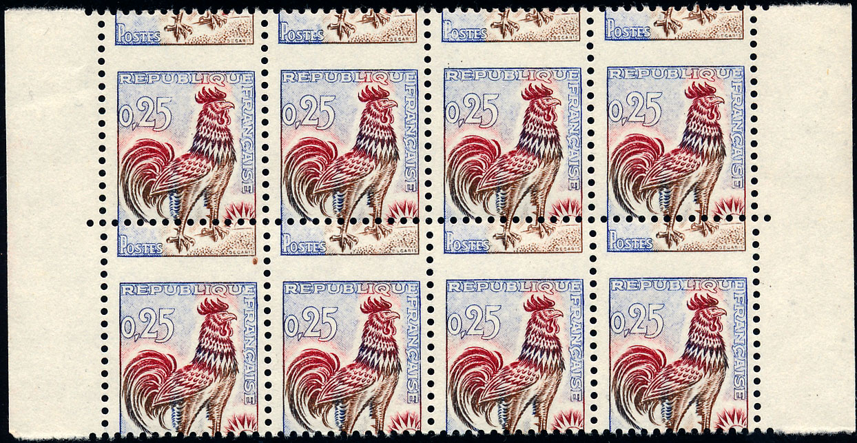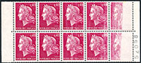 n°1536B **, 40c Cheffer, bloc de 10 issu de carnet avec variété d"impression partielle.une petite rousseur sur un timbre. rare