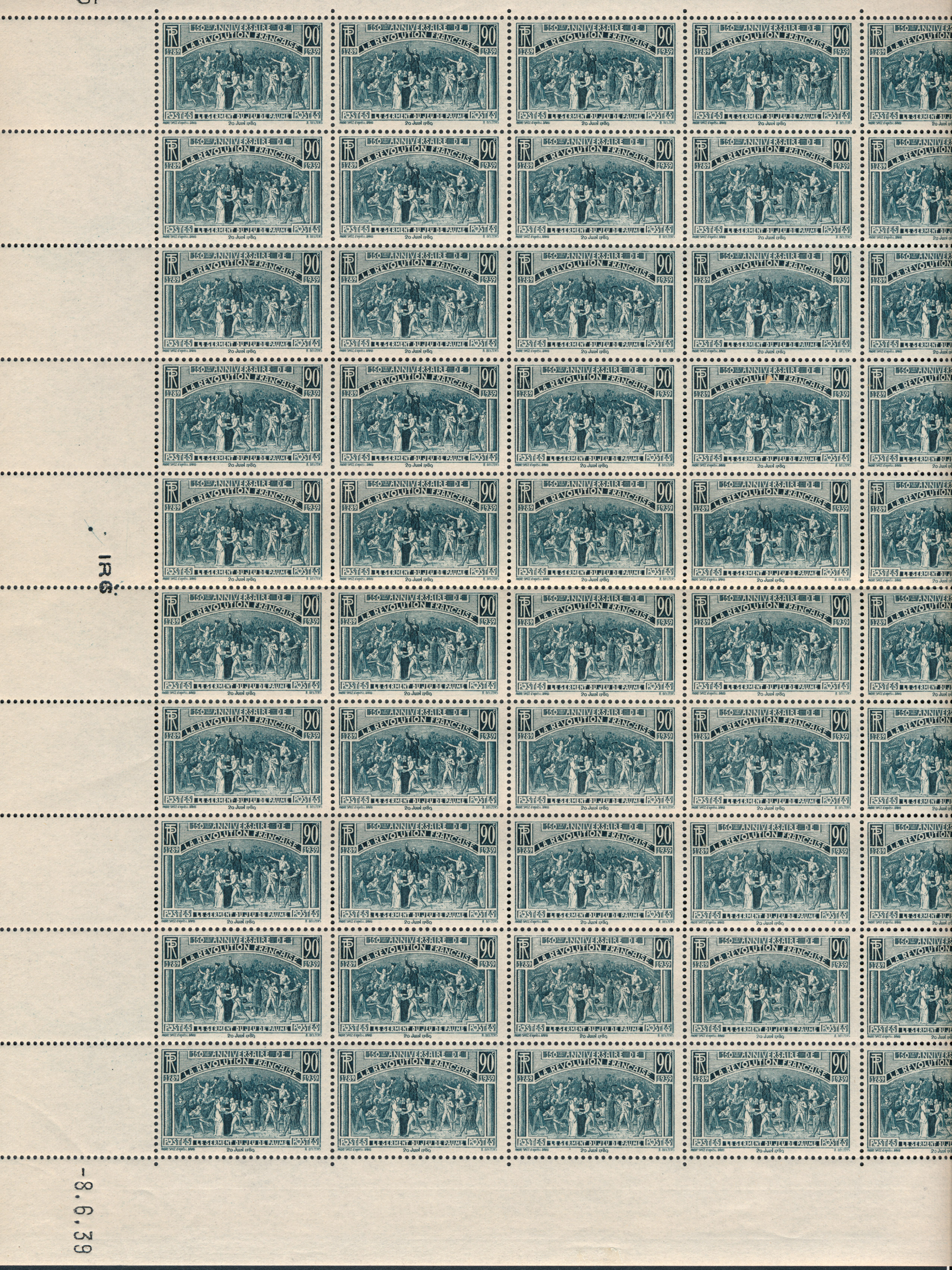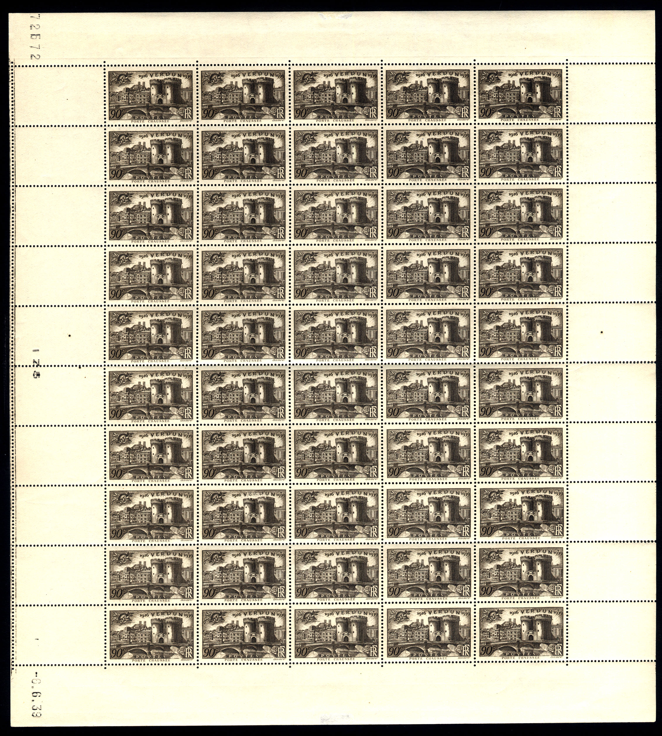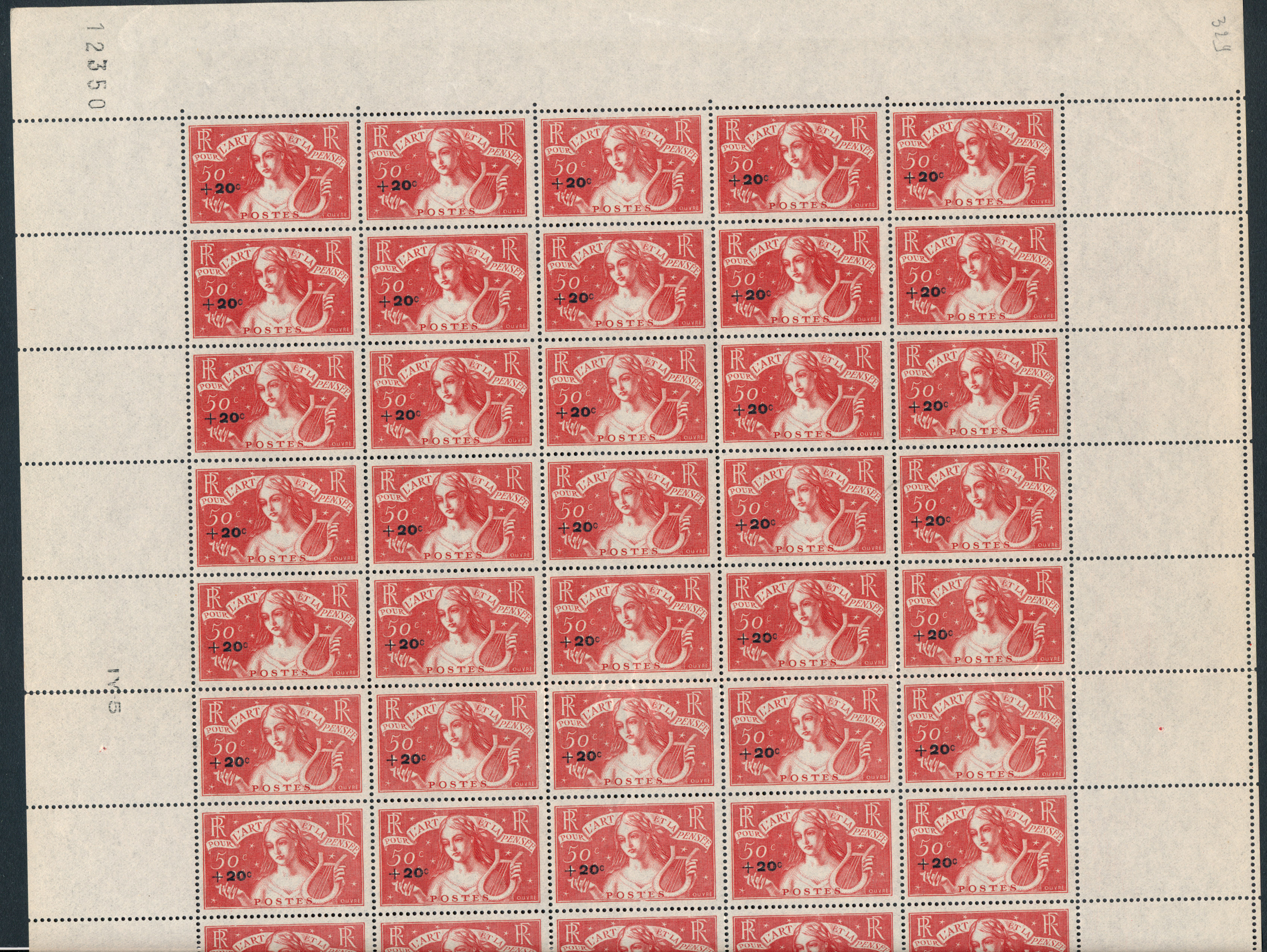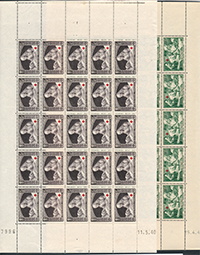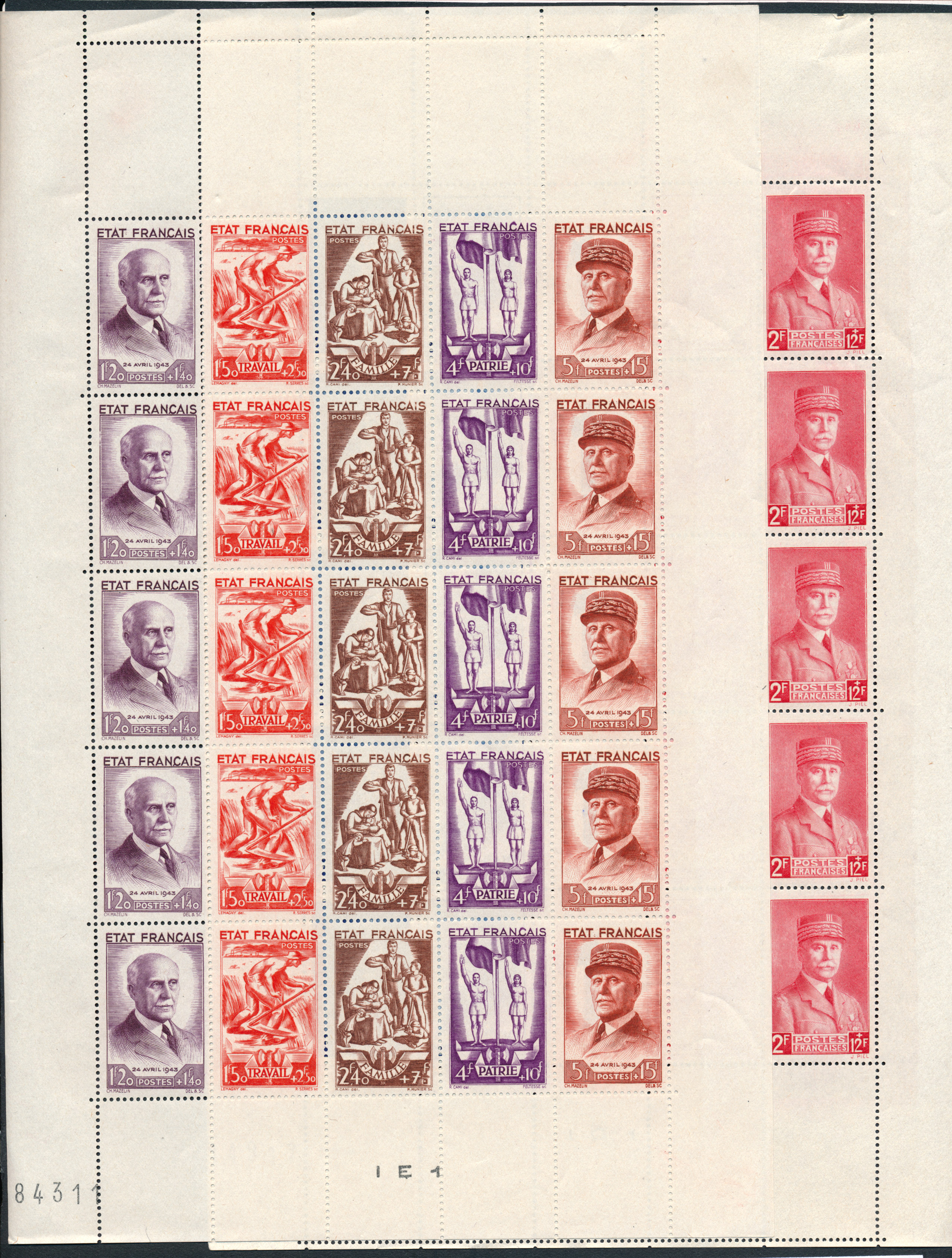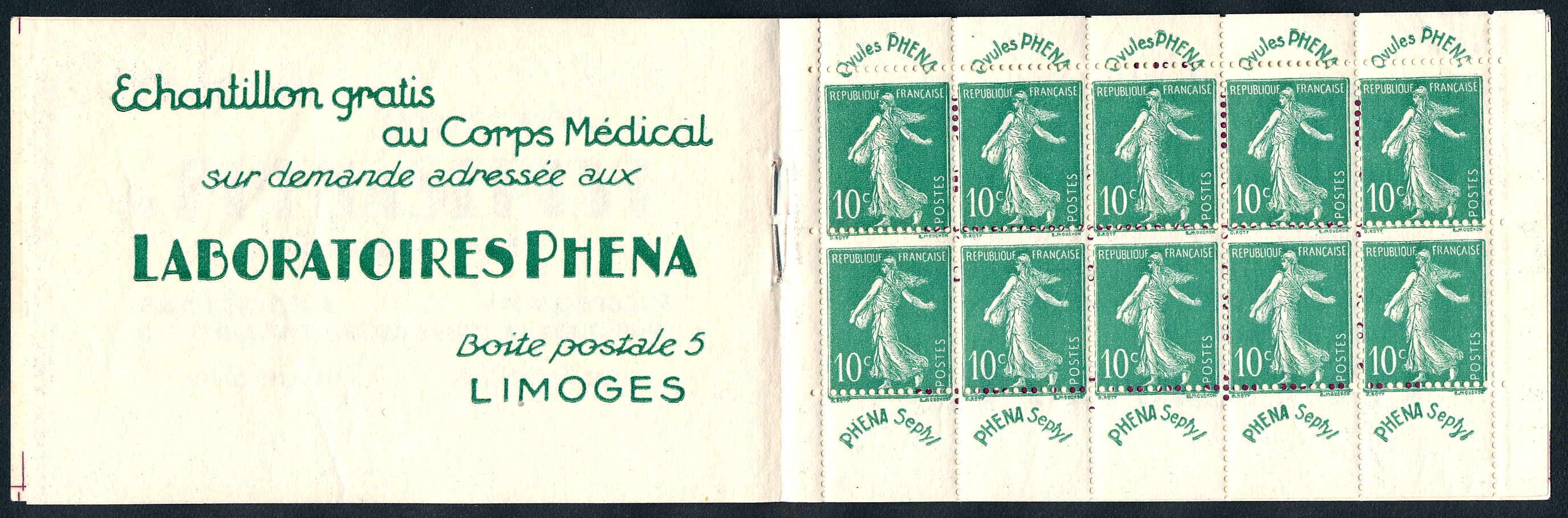 n°1536B **, 40c Cheffer, bloc de 10 issu de carnet avec variété d"impression partielle.une petite rousseur sur un timbre. rare
