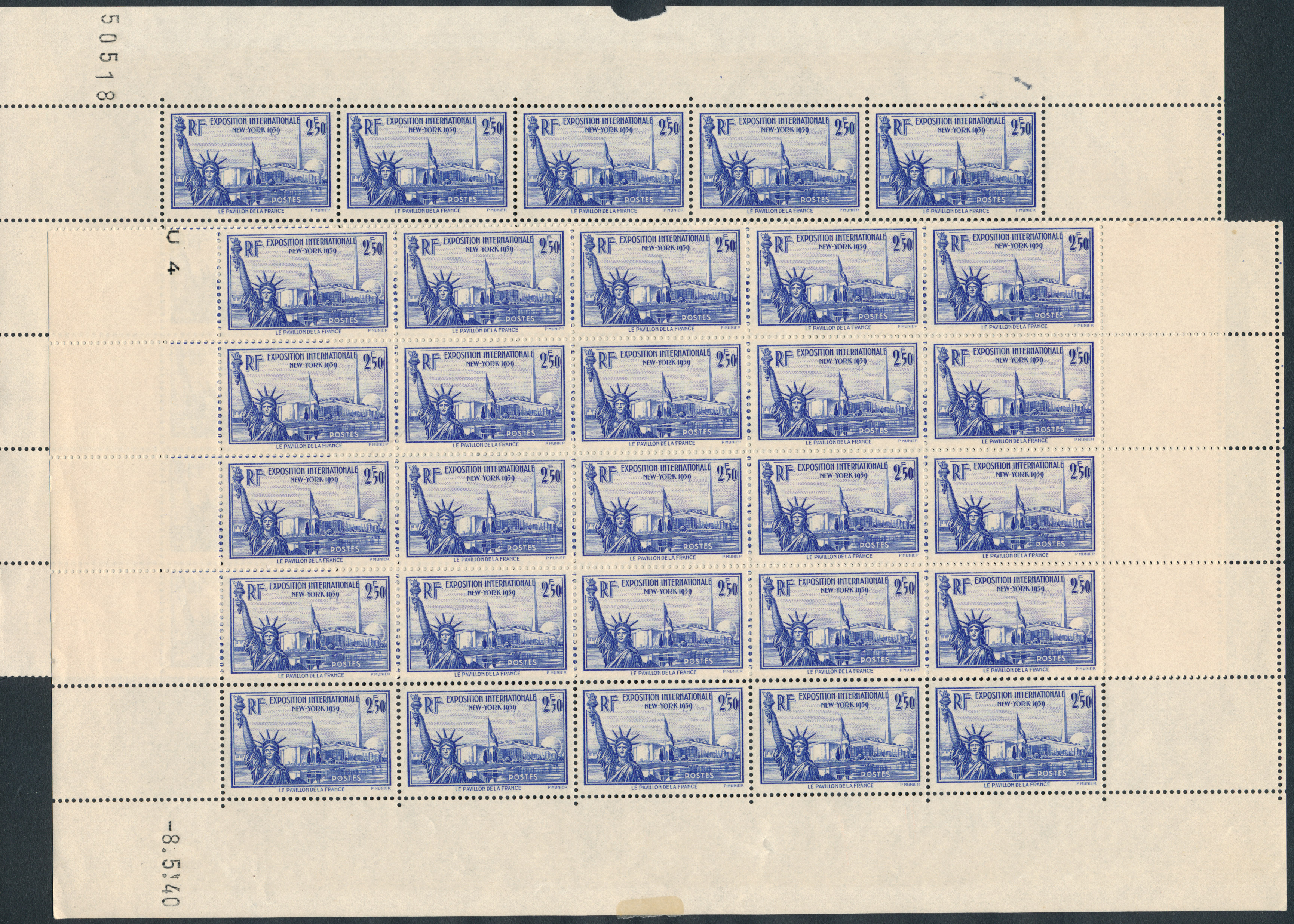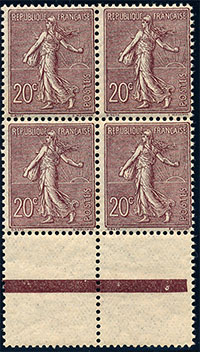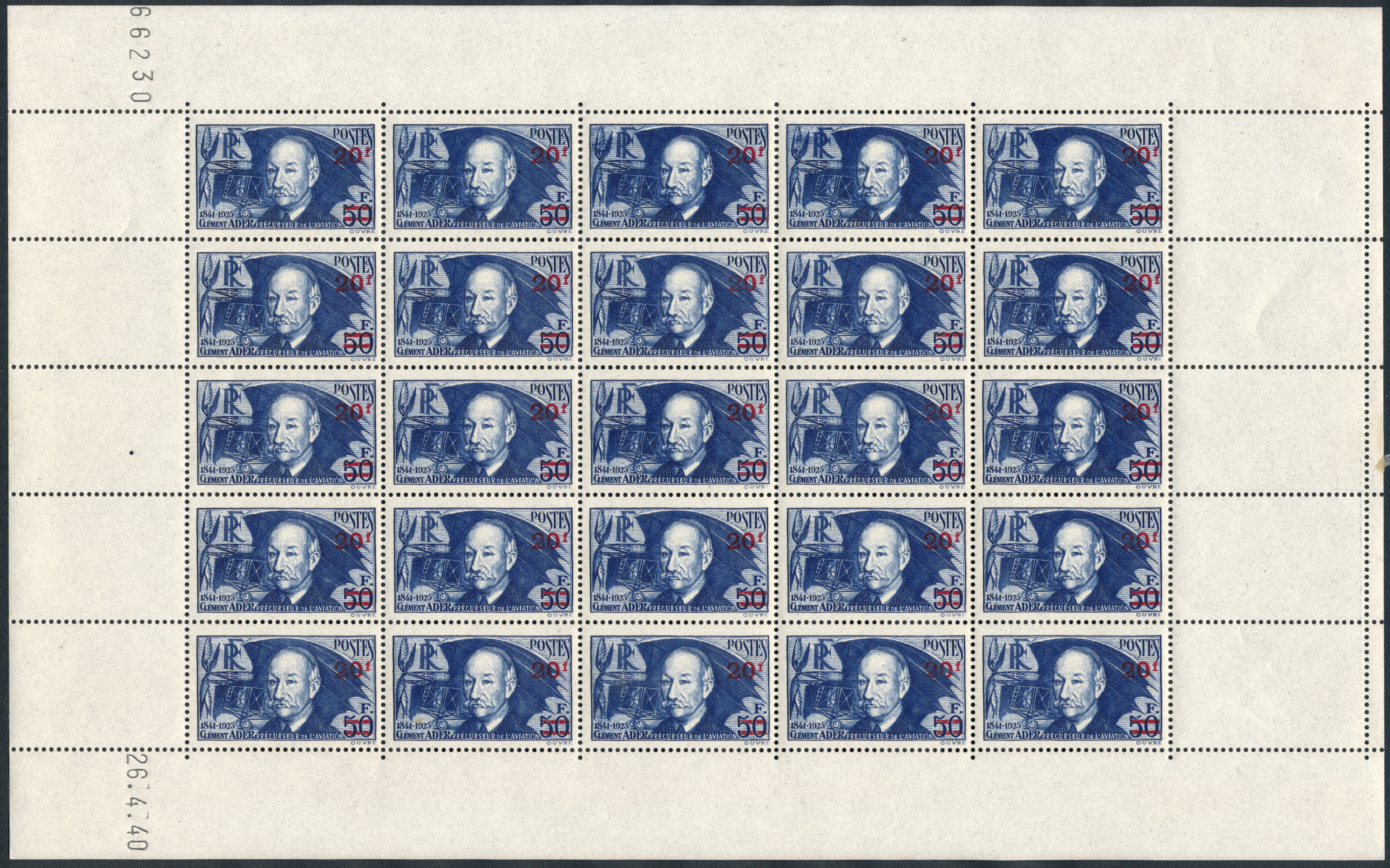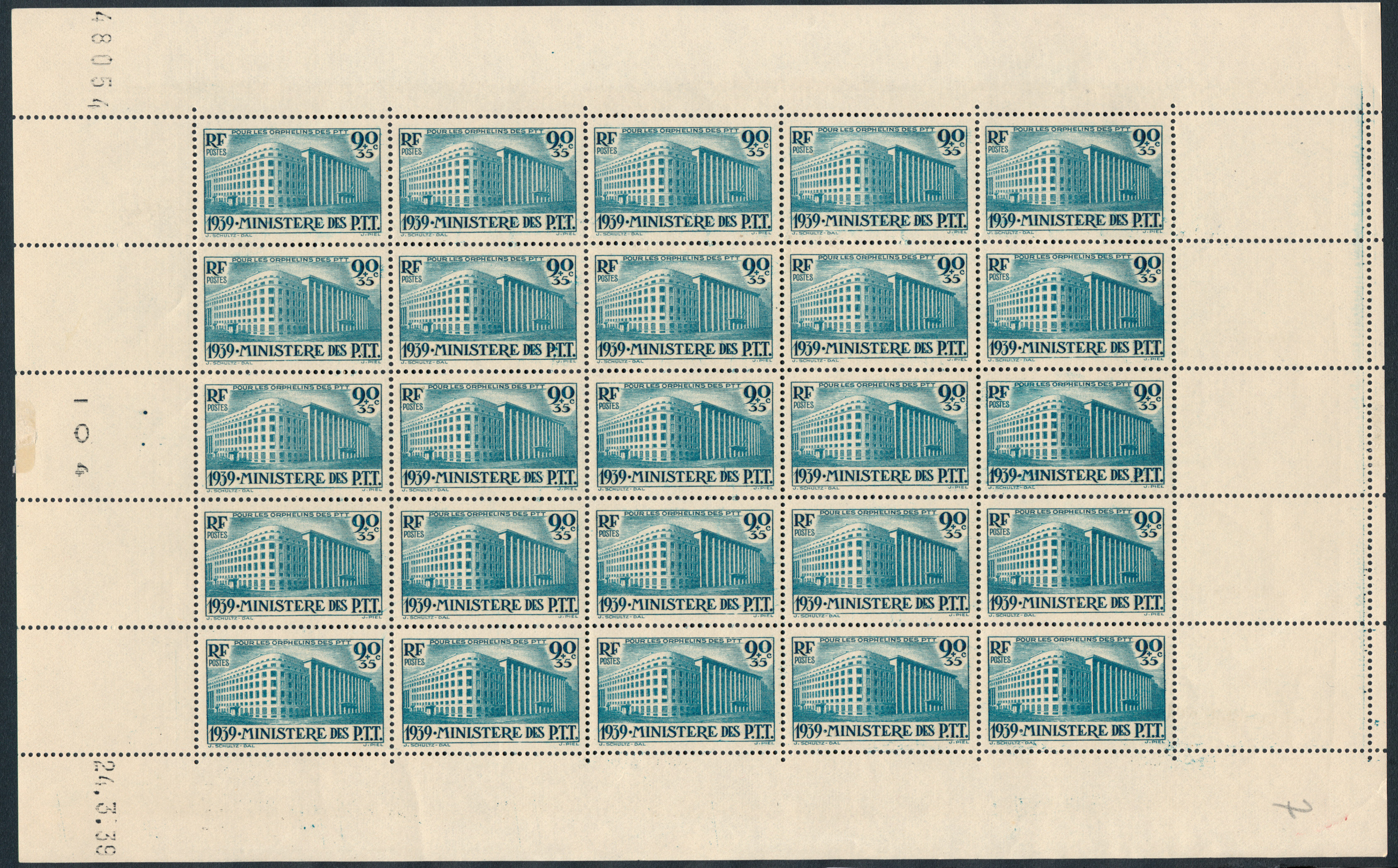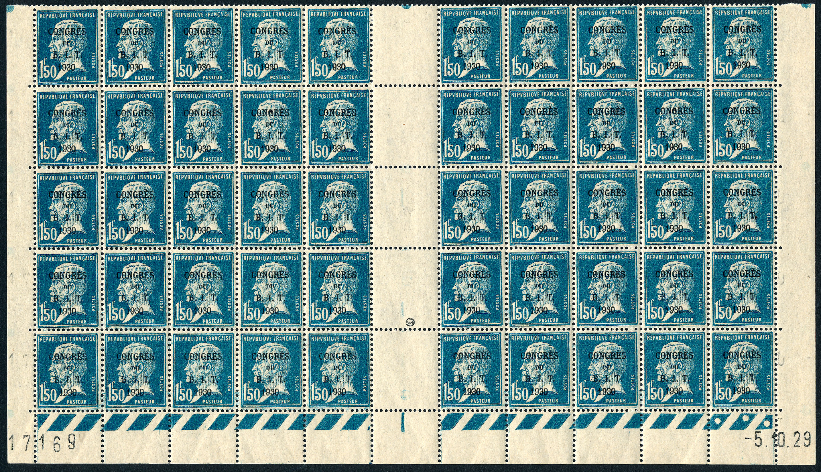 n°1536B **, 40c Cheffer, bloc de 10 issu de carnet avec variété d"impression partielle.une petite rousseur sur un timbre. rare