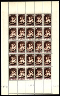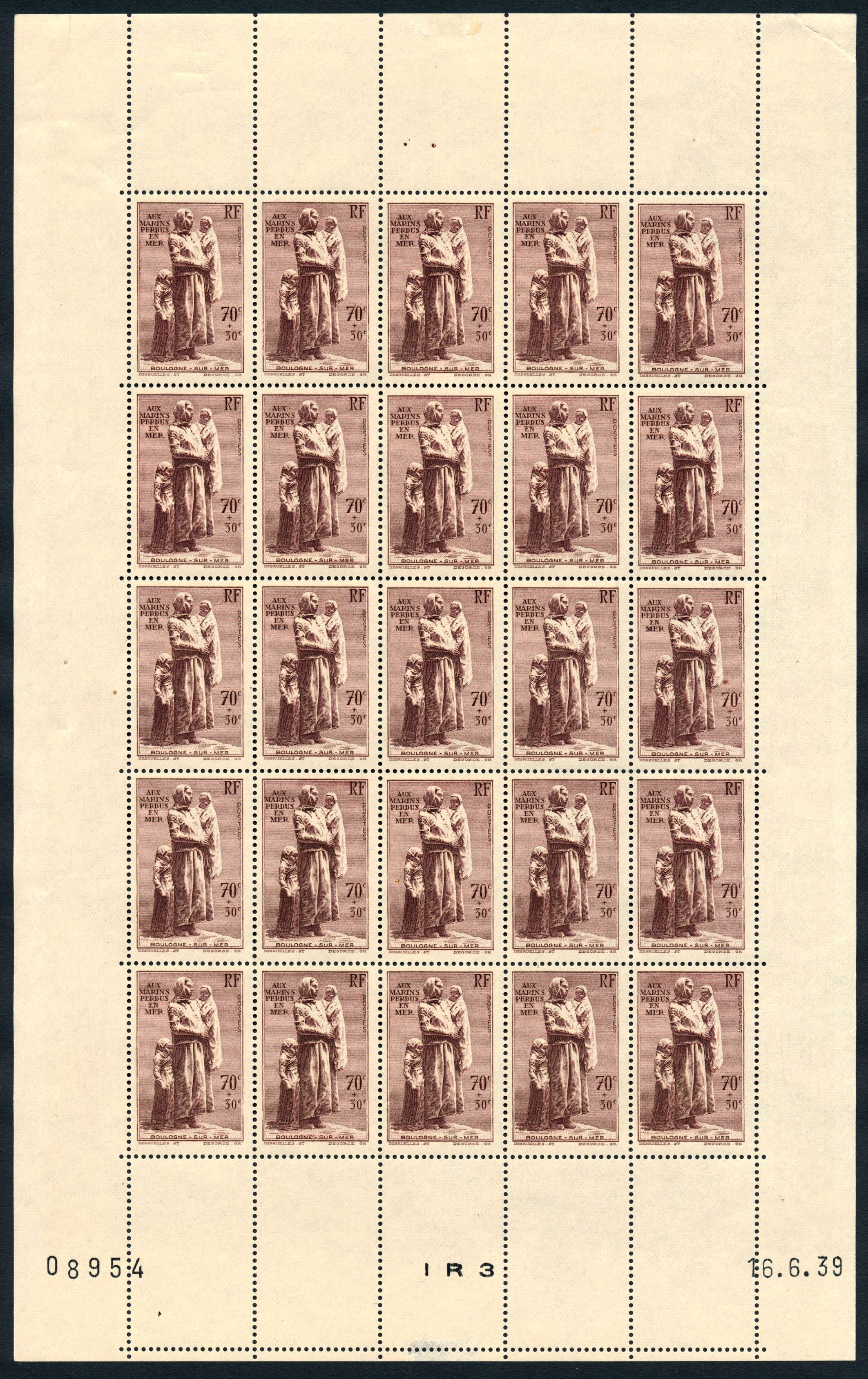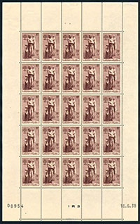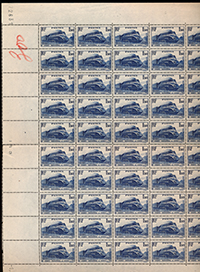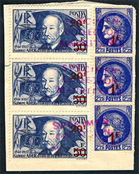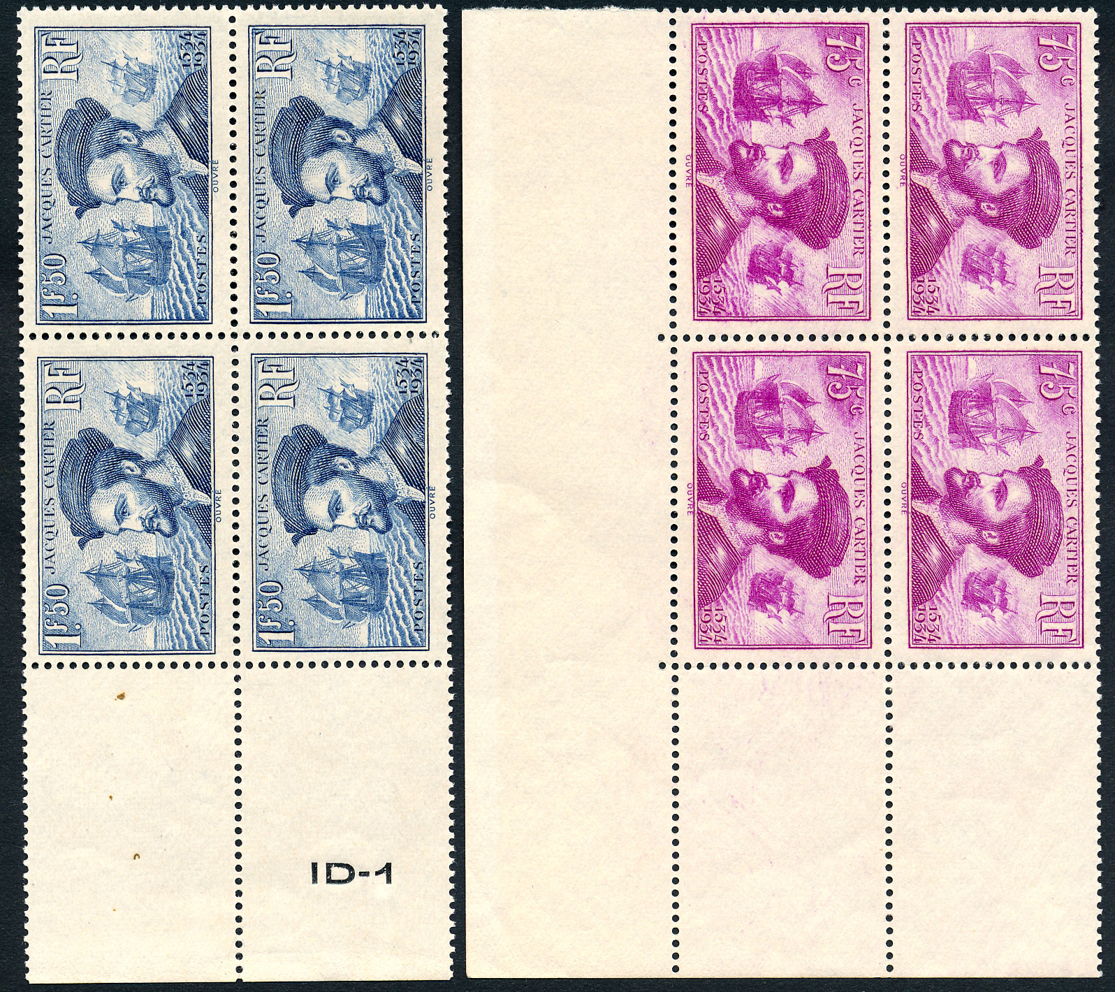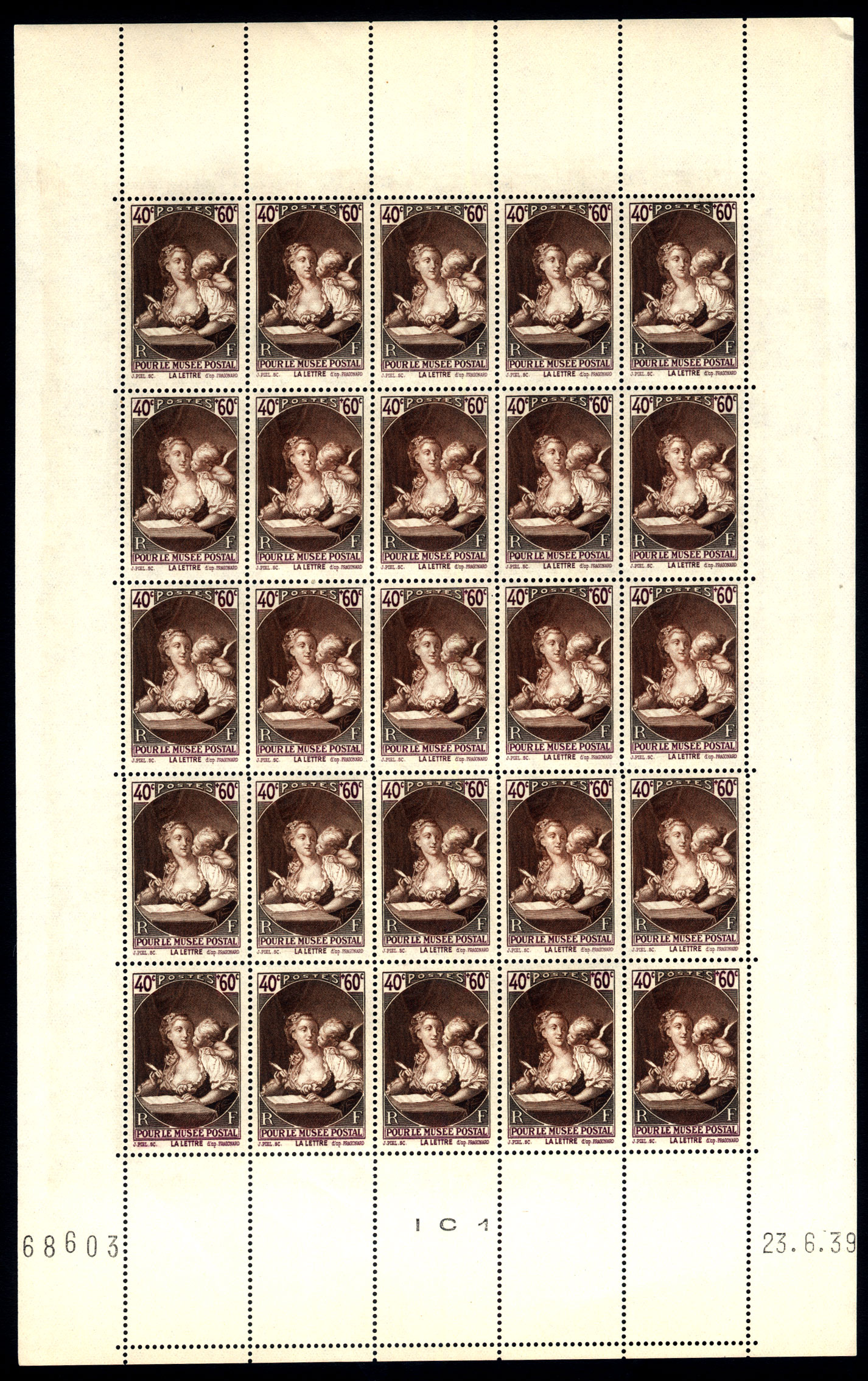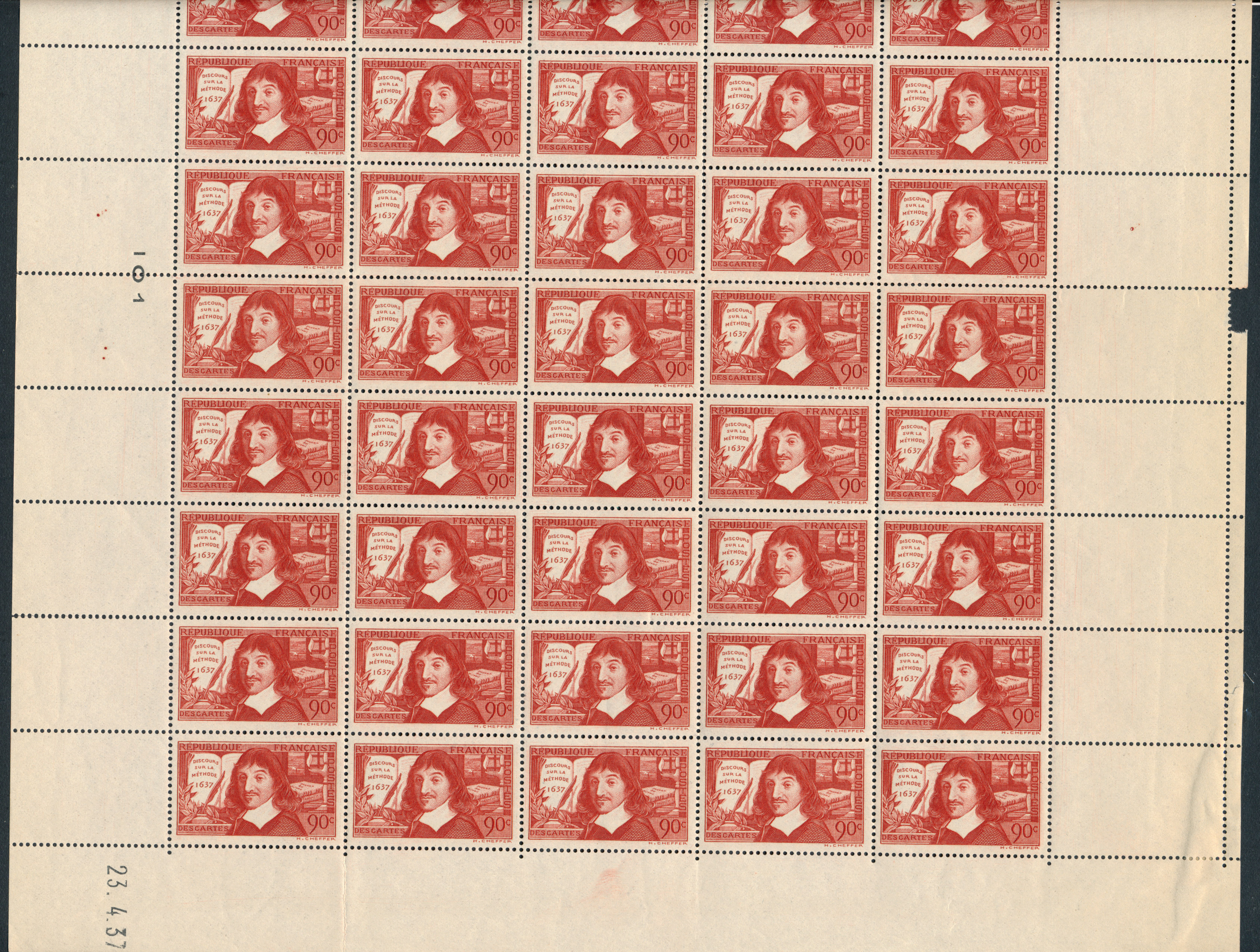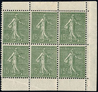 n°1536B **, 40c Cheffer, bloc de 10 issu de carnet avec variété d"impression partielle.une petite rousseur sur un timbre. rare