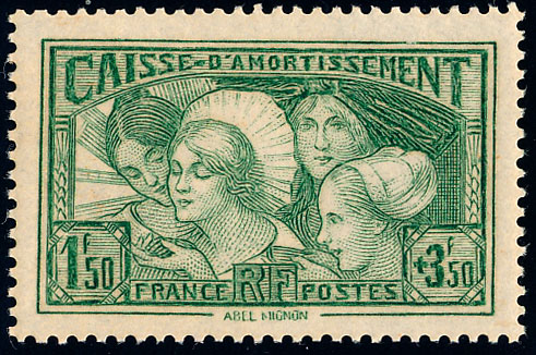n°1535 **, 0.50f Cheffer NON EMIS. nuance vert olive, froissure. neuf avec gomme d"origine intacte.