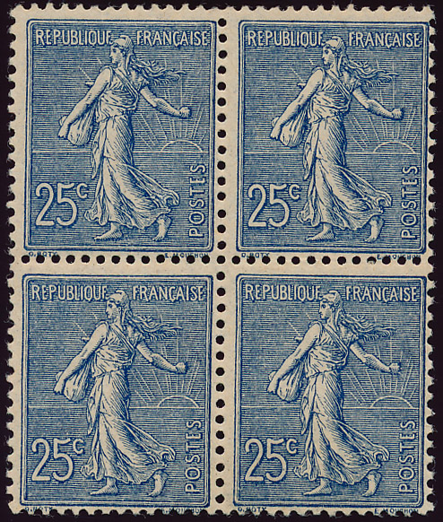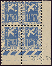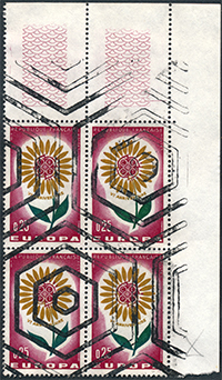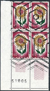 n°1430 (*), 25c EUROPA, bloc de 4 avec annulation hexagone de l"atelier pour la destruction. rare. certificat