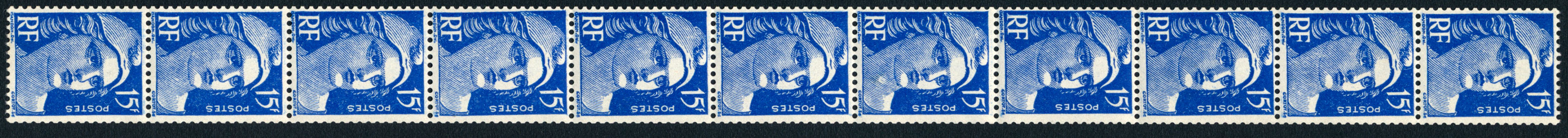n°1816 neuf, 0,80 Marianne de Béquet en bloc de 15 numéroté issu de bande sans fin pour carnet non confectionnée