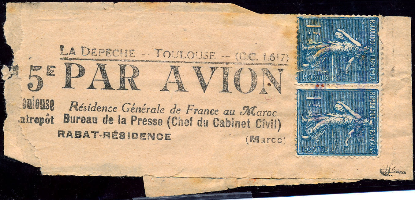 n°15 , 5c vert (8 septembre) sur devant de bande de KOERTING FRERES. defectueux mais très rare exemple de ce timbre sur document. signé/certificat