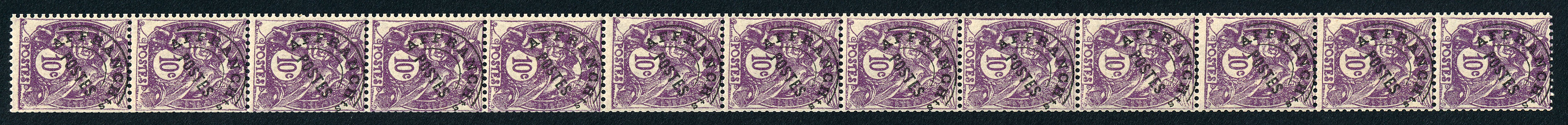 n°43 **, Blanc 10c violet, bande de 13. superbe et très rare.