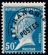 n°25c , POSTES PARIS 1920. Le P de POSTE a été rajouté à la main. il s"agit du timbre le plus rare des préoblitérés. 2 exemplaires connus. très beau