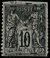 n°16 , 10c noir sur lilas, du 26 septembre 93. dents coupés mais RR