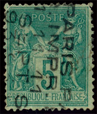 n°15 , 5c vert, roulette du 17 novembre 93. clair dans un coin mais TB pour cette émission.