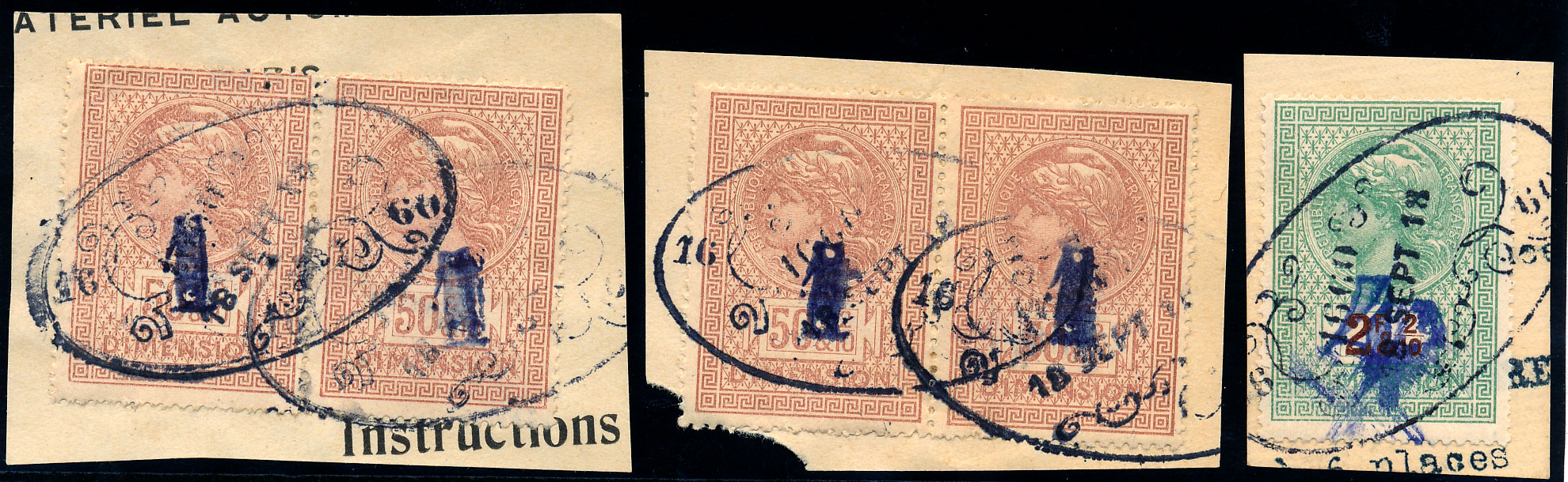 n°13 , 50c bleu en paire sur domument, émission provisoire de Lille en 1871. très rare sur document et très rare en paire. ex collection Paolo de Magistris