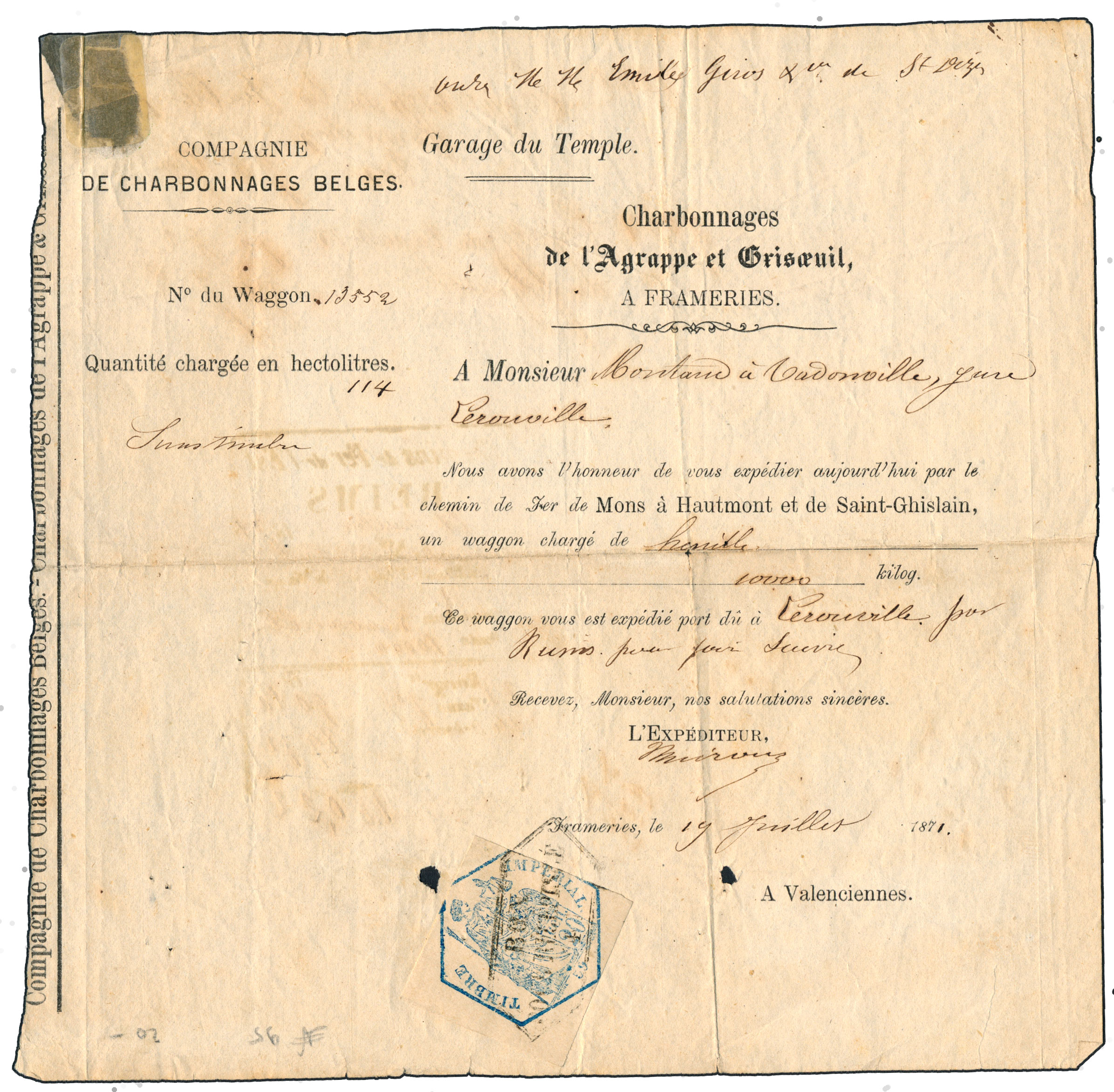 n°12 , 20c bleu, Emission provisoire de Lille de 1871, sur document de VALENCIENNES du 19 juillet 1871. très rare sur document. ex collection Paolo de Magistris
