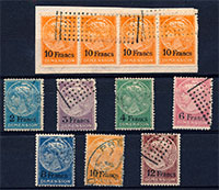 n°38/42 N&O, 17 timbres, dont une paire du 42 avec cachet ATELIER GENERAL DU TIMBRE partiel. TB