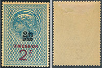 n°82 *, 2/10 en sus sur 2F bleu, non émis. froissure naturelle du papier au centre, rare TB