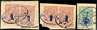 2 épreuve non chiffrées. bleu (léger défaut) et rouge (TB)