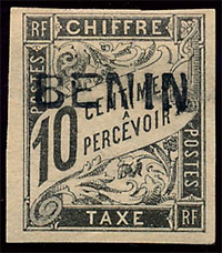 n°2 *, 10c surchargé BENIN, superbe.