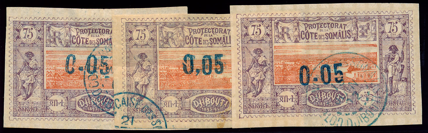 n°23 , 0.05 sur 75c, 3 exemplaires TB
