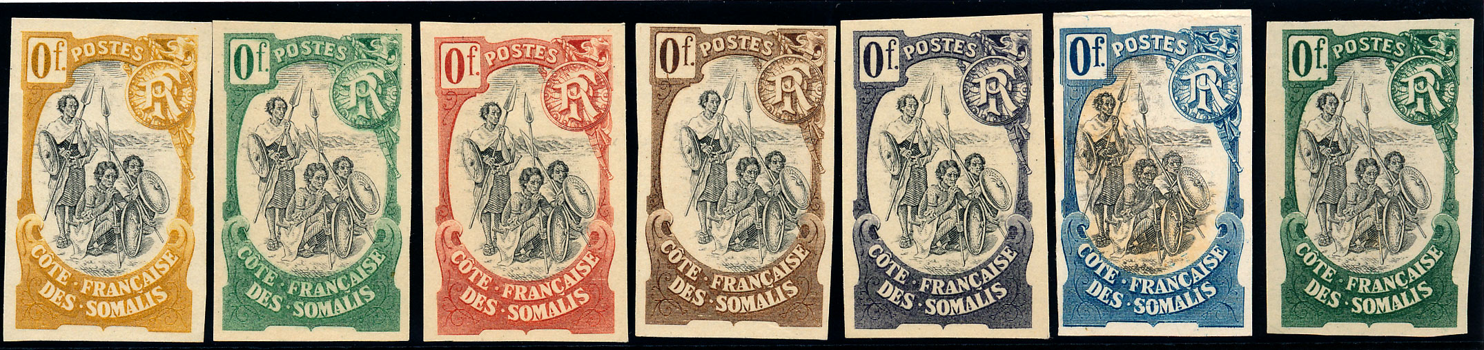 type Guerriers, essais 0F. 7 couleurs différentes. rares et TB