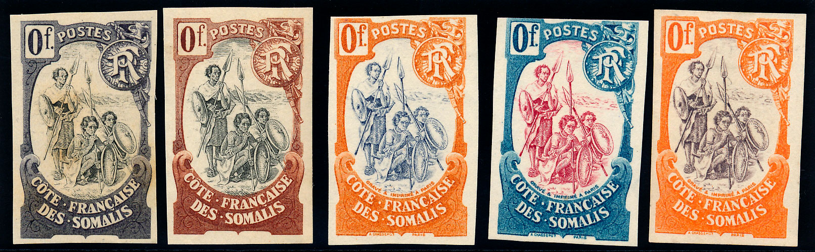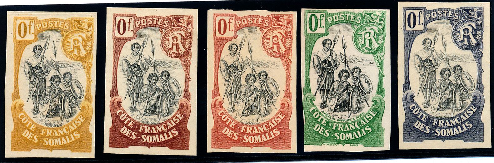 type Guerriers, essais 0F. 5 couleurs différentes. rares et TB