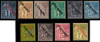 n°13/24 *, sauf 21/22. les 10 valeurs suchargées. TB.