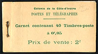 GUE DE KITIN, 10c vermillion et rouge, carnet de 20. B/TB (cristals collés)