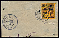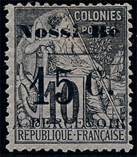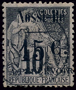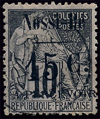 n°1 , 25 sur 40c surcharge bleue pâle. timbre très rare du 1er tirage. superbe.