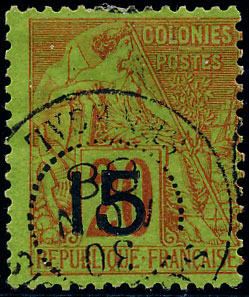 n°5 , 15 sur 20c rouge brique sur vert, type IX, TB