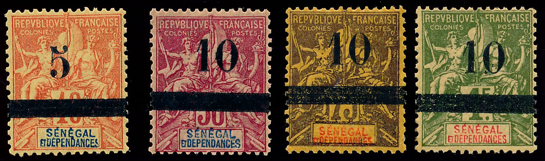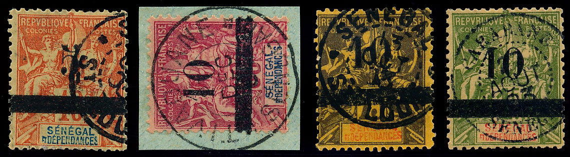 n°26/29 , type GROUPE surchargés. tous oblitérés. sup.