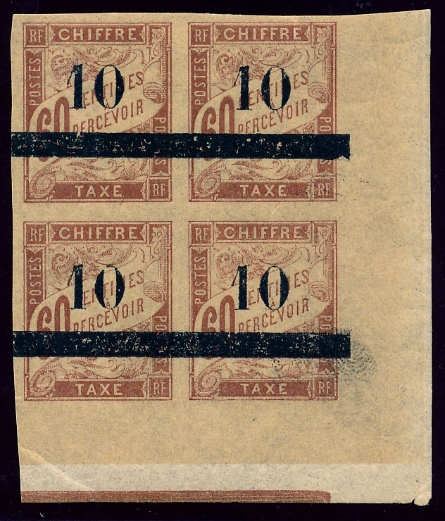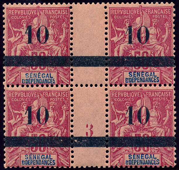 n°27 **, 10 sur 50c rose, bloc de 4 millésime 3. neuf avec gomme d"origine intacte