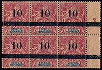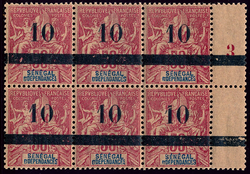 n°27 **, 10 sur 50c rose, bloc de 6, millésime 3. neuf avec gomme d"origine intacte.