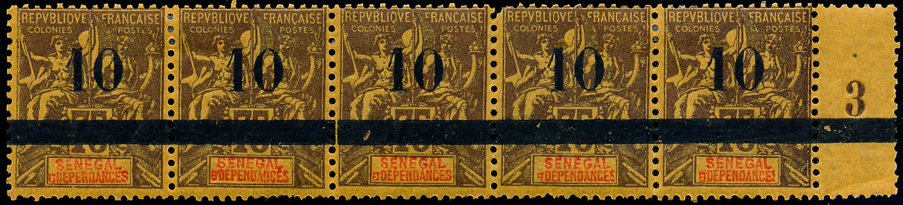 n°28 *, 10 sur 75c violet sur jaune orange. un timbre avec coin def. sinon TB. millésime 3.