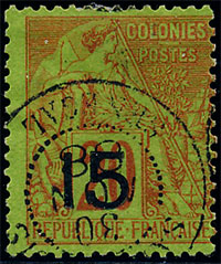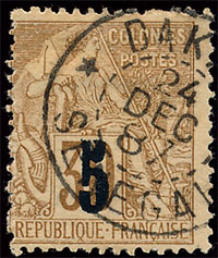 n°2 , 5 sur 30c brun, surcharge type II, TB