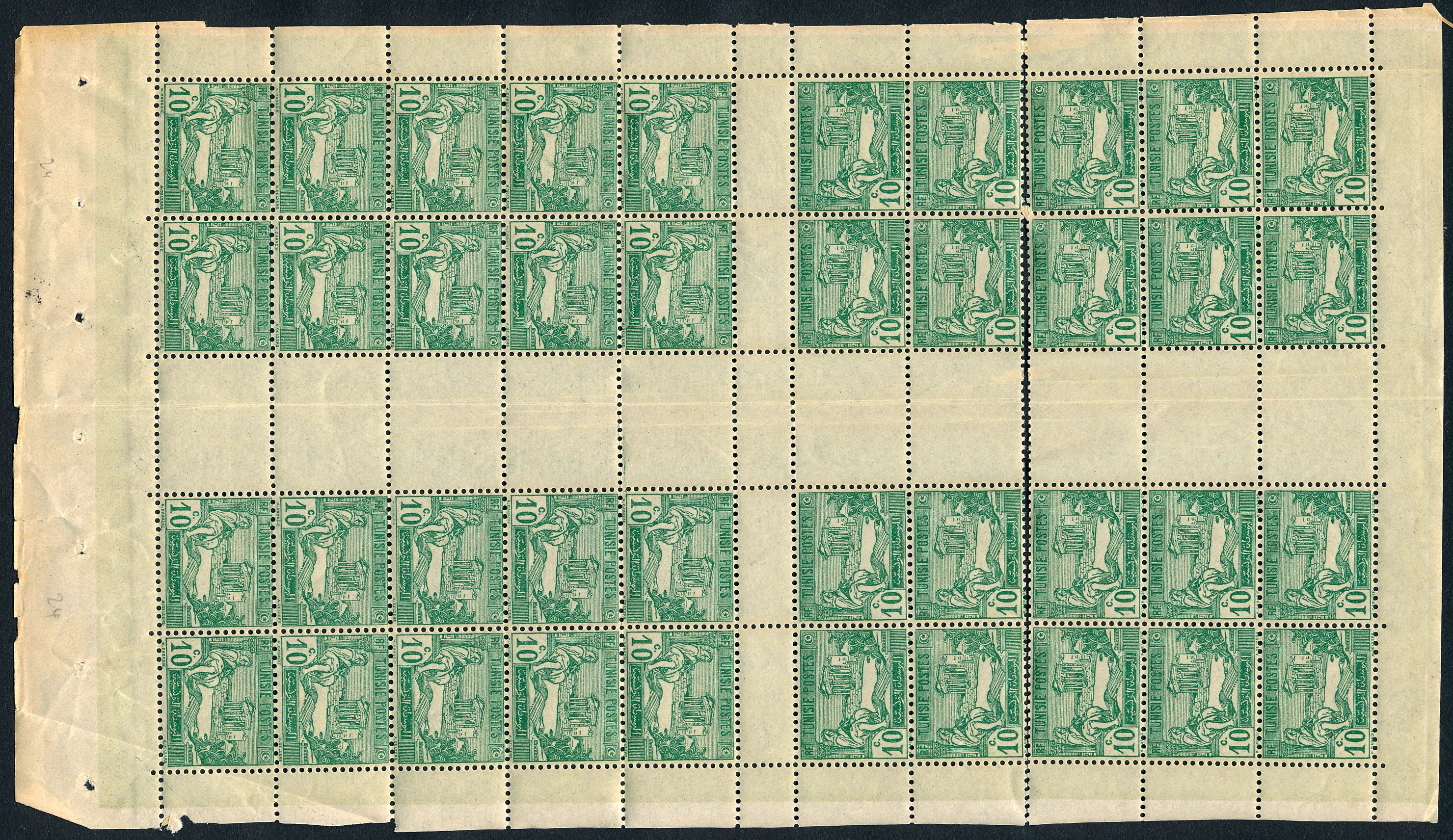 10c Laboureur, bloc de 40 issue de feuille de carnet non confectionné. détaché sur 12ex. rare B/TB