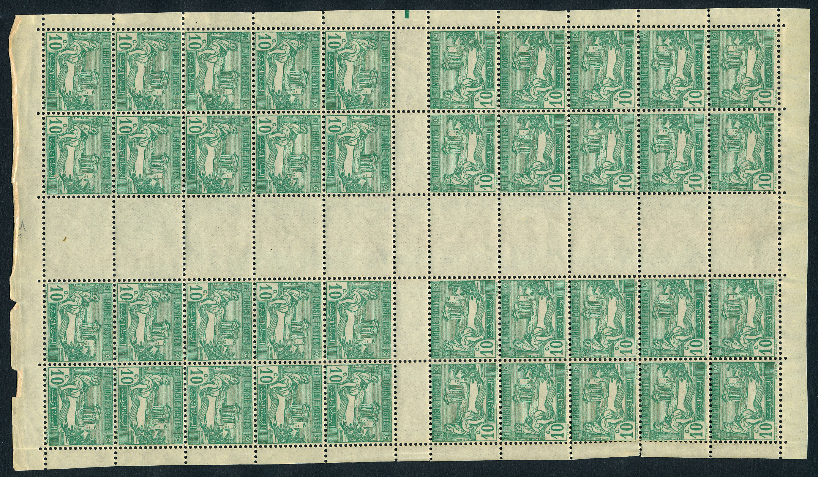 10c Laboureur, bloc de 40 issue de feuille de carnet non confectionné. rare TB