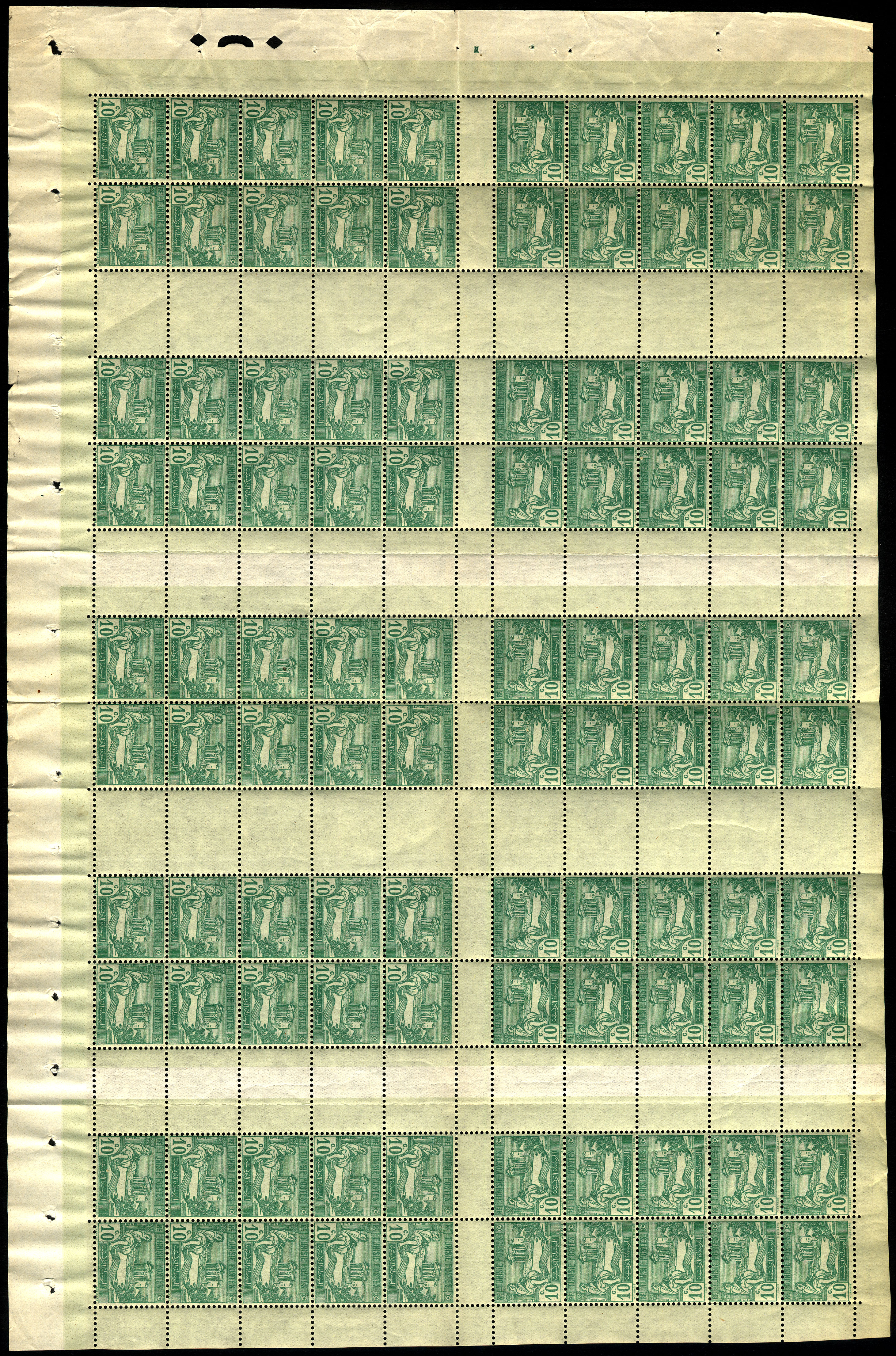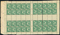 10c vert Laboureur, bloc de 100 issue de feuille de carnet non confectionné. rare TB